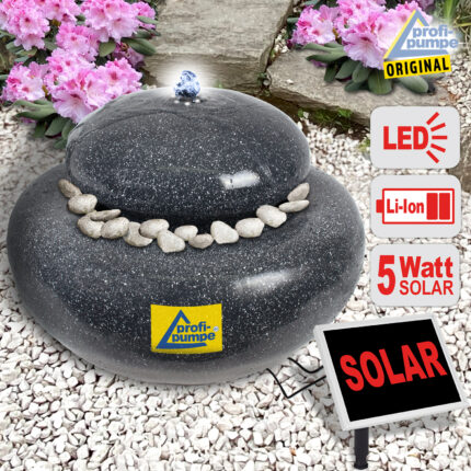 Solar-Brunnen “”GRANITSCHALEN-KASKADE-3″” mit Li-Ion-Akku und LED-Licht