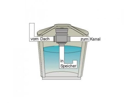 Der Regenfilter E250 wird direkt in das Erdreich oder den Regenspeicher eingebaut. Er filtert dort sämtlichen Schmutz aus dem Regenwasser,