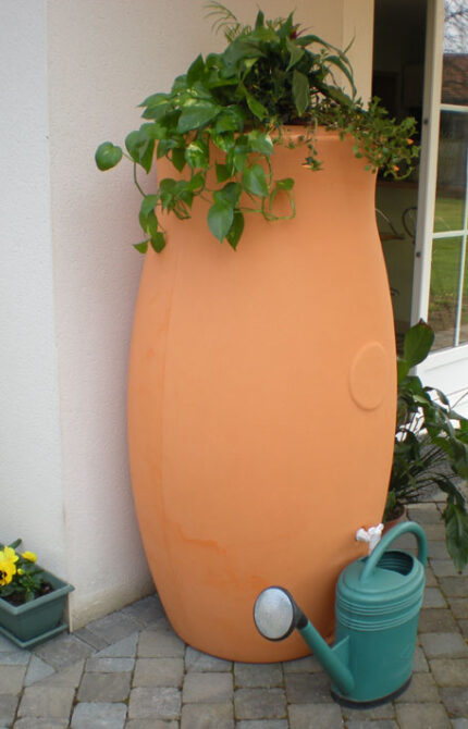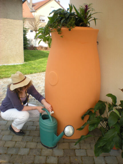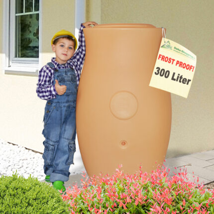 Regenfass mit Pflanzschale – Amphore Maja 300l terrakotta