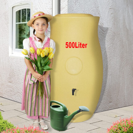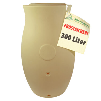Regenfass mit Pflanzschale – Amphore Maja 300l beige-gelb