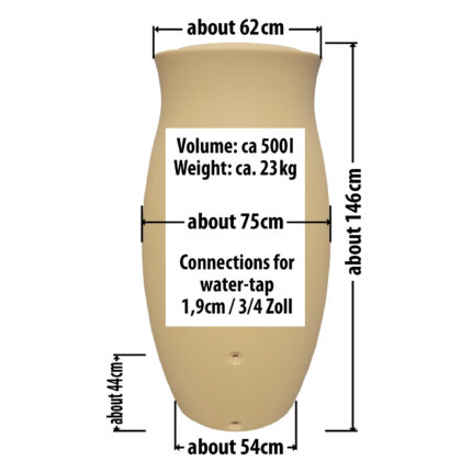 Regenfass mit Pflanzschale – Amphore Maja 500l beige-gelb – zzgl. Fallrohrfilter T33 – Auswahl