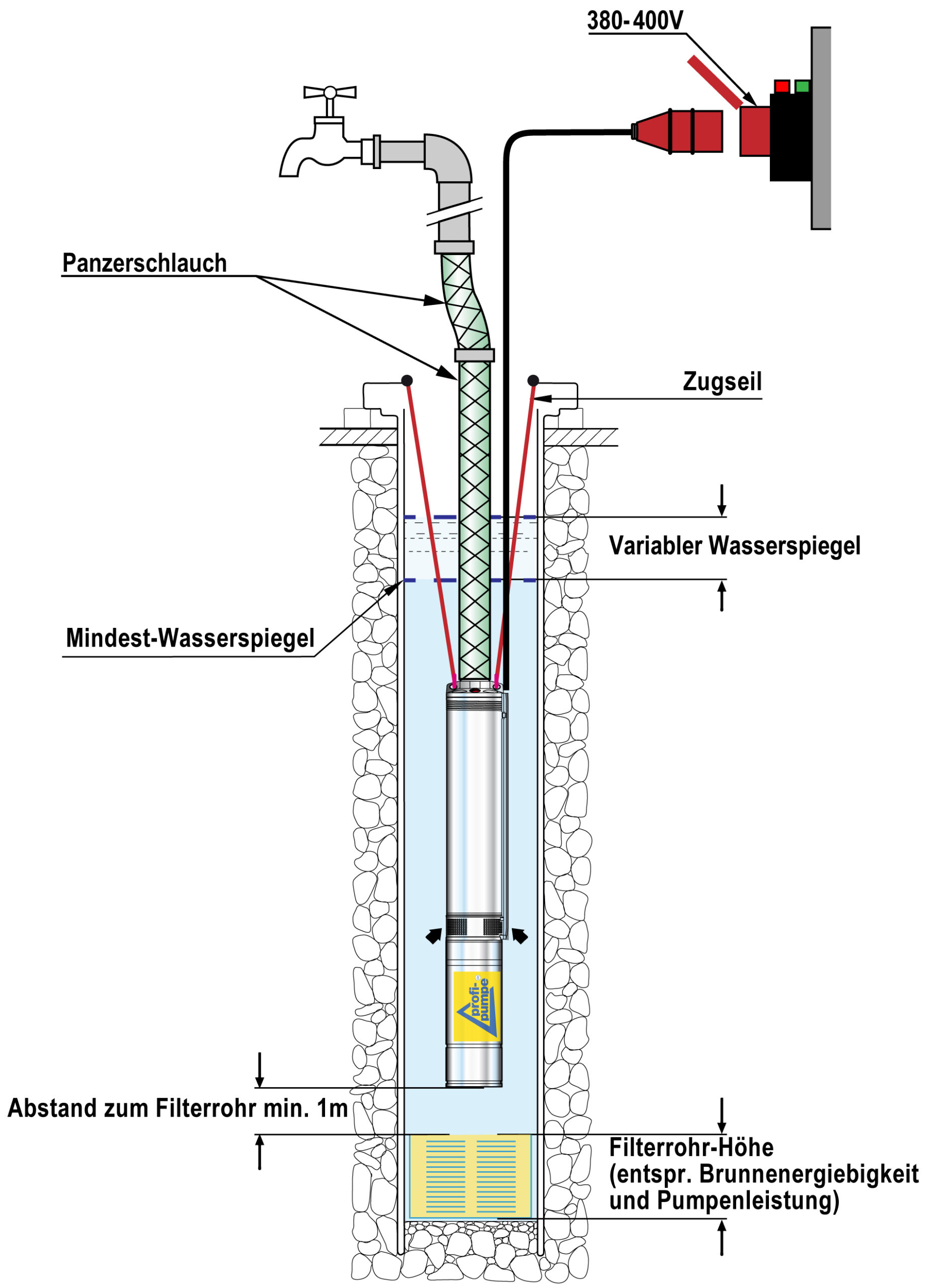 - Tiefbrunnenpumpe für 400V Drehstrom