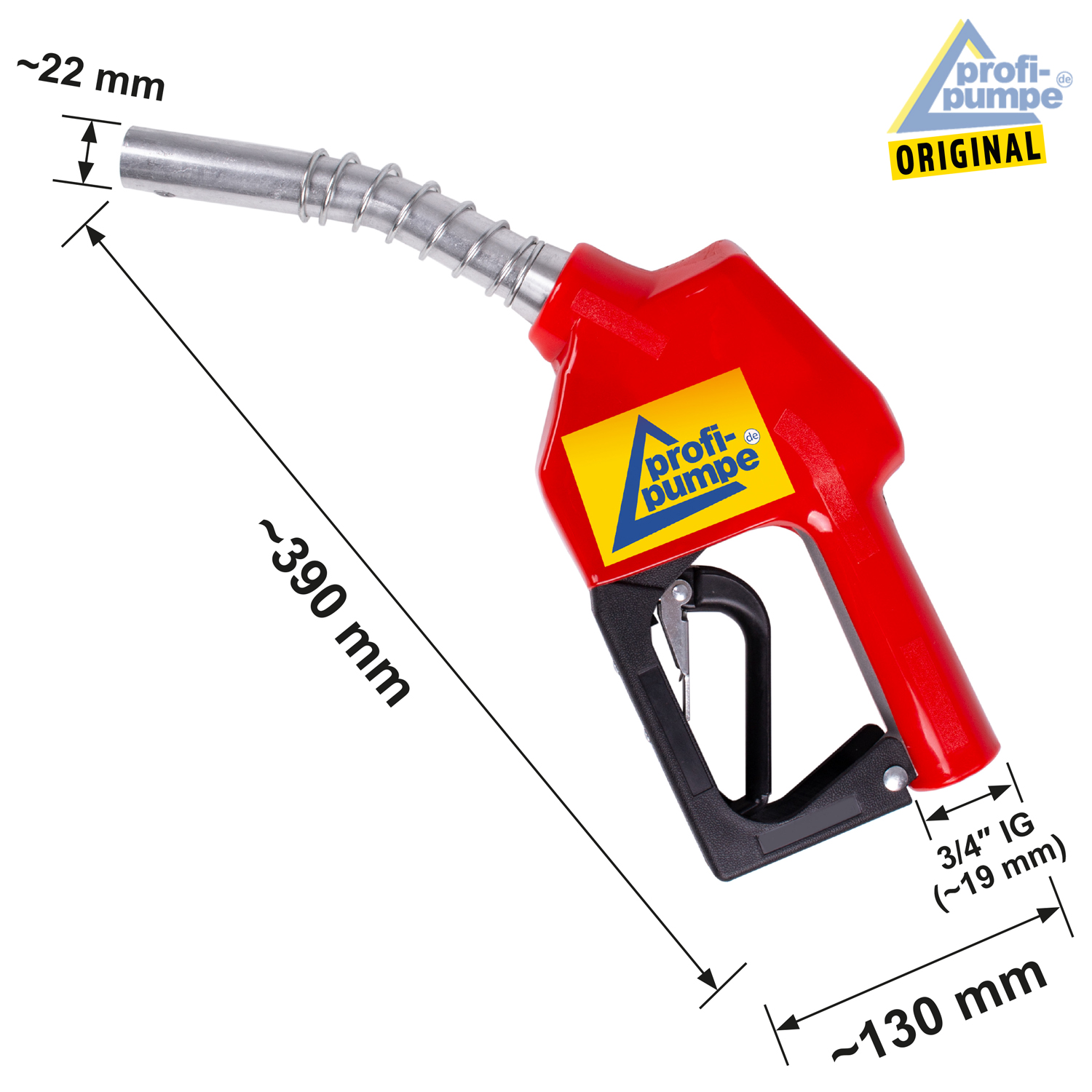 Diese automatische Zapfpistole, mit automatischer Abschaltung, ermöglicht eine einfache und sichere Diesel-Entnahme und kann in PKWs, LKWs, Nutzfahrzeugen und Maschinen mit einer Förderleistung von bis zu 45 l/min verwendet werden.