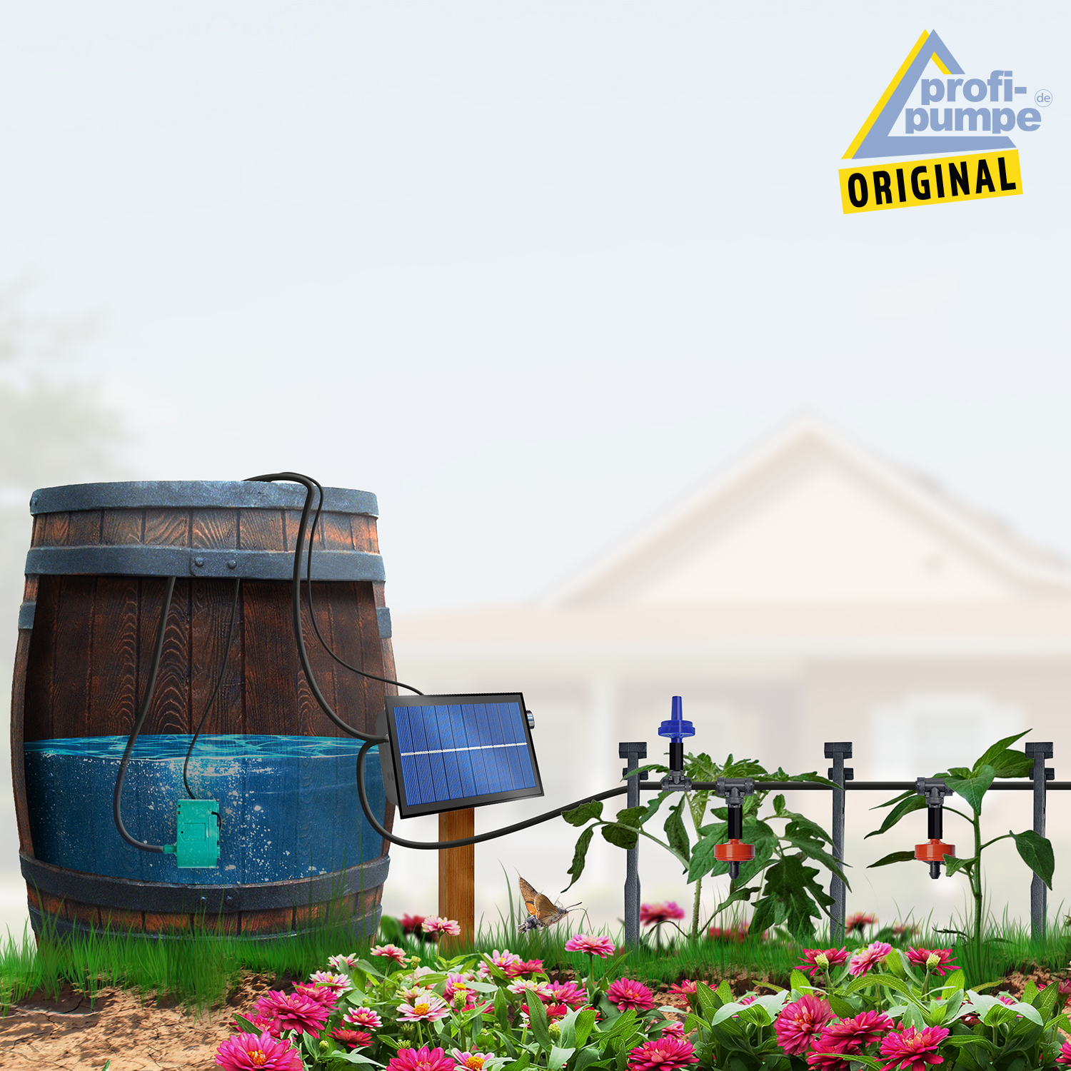 Das Solar-Bewässerungssystem SOLAR-DROP P50 nutzt die Kraft der Sonne und bewässert Blumen-, Gemüsebeete, Rasenflächen, Blumentöpfe, Obstbäume und mehr automatisch. Mit dieser Solar-Tröpfchen-Bewässerung sparen Sie Zeit, Mühe und Wasser. Sie können mit unserem Solar-Bewässerungssystem SOLAR-DROP P50 bis zu 50 Bewässerungsstellen versorgen. Die Bewässerung kann dem individuellem Wasserbedarf der Pflanzen angepasst werden.