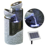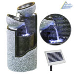 B-Ware Solar – Brunnen “GRANIT-SÄULE & SCHALEN-2” mit LiIon-Akku & LED-Licht (neu)
