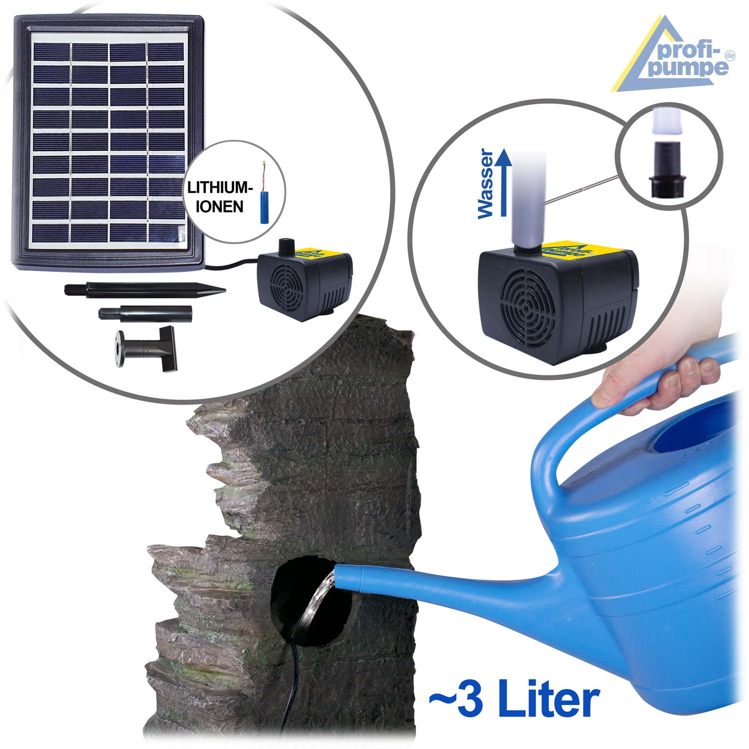Solarbetriebener Garten-Brunnen mit LI-Ion Akku und LED-Lichter