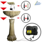 Solarbetriebener Garten-Brunnen mit Li-Ion Akku und LED-Lichter