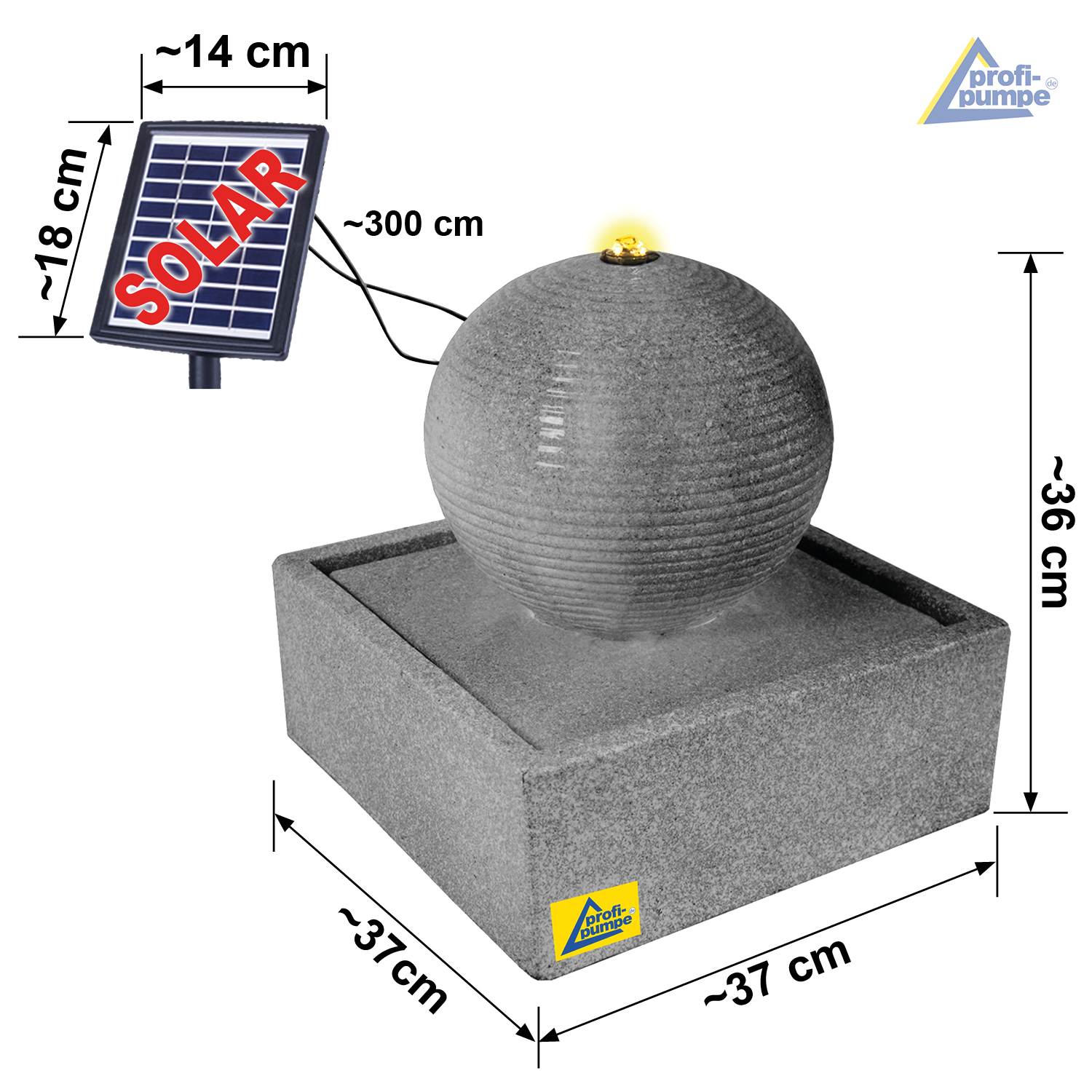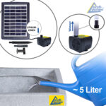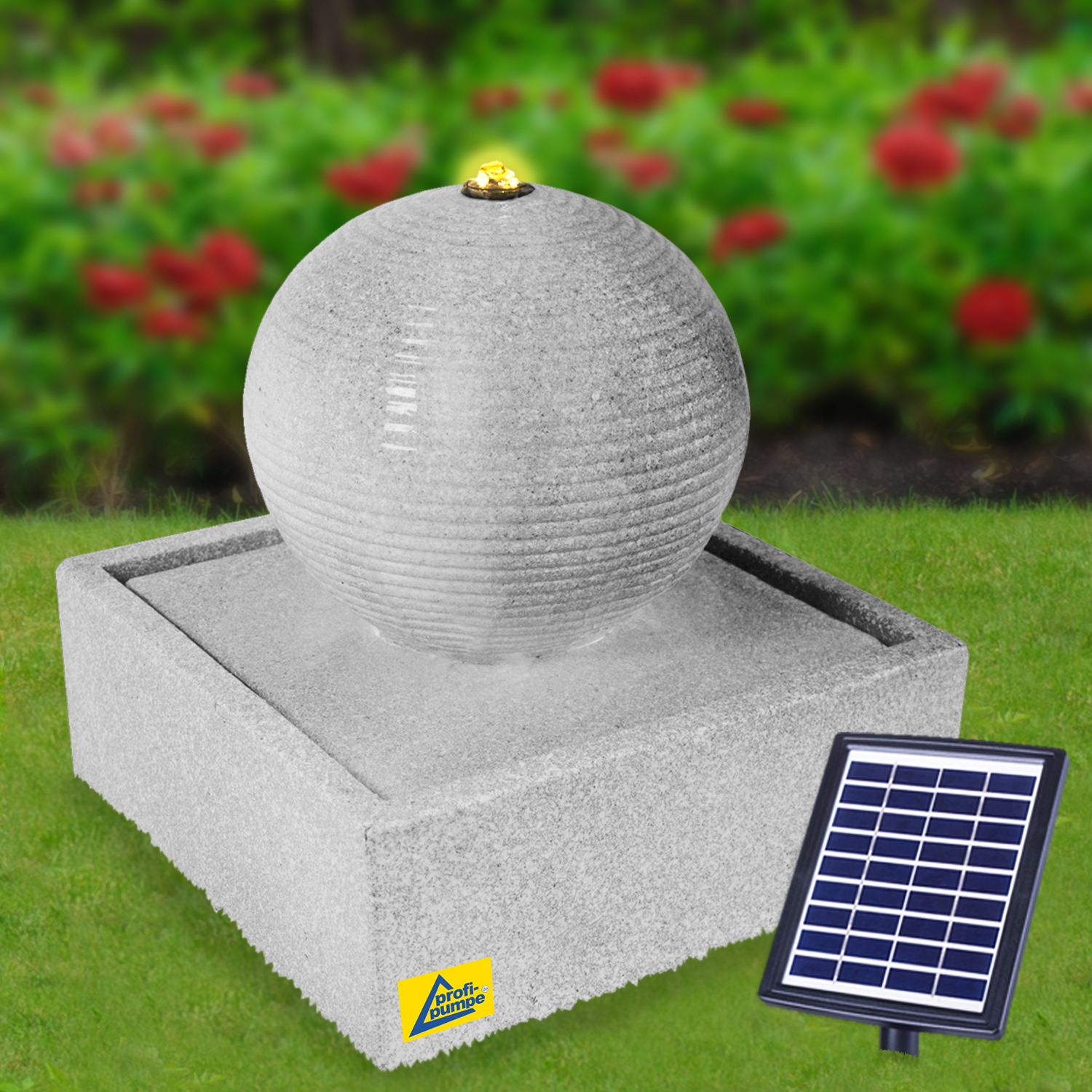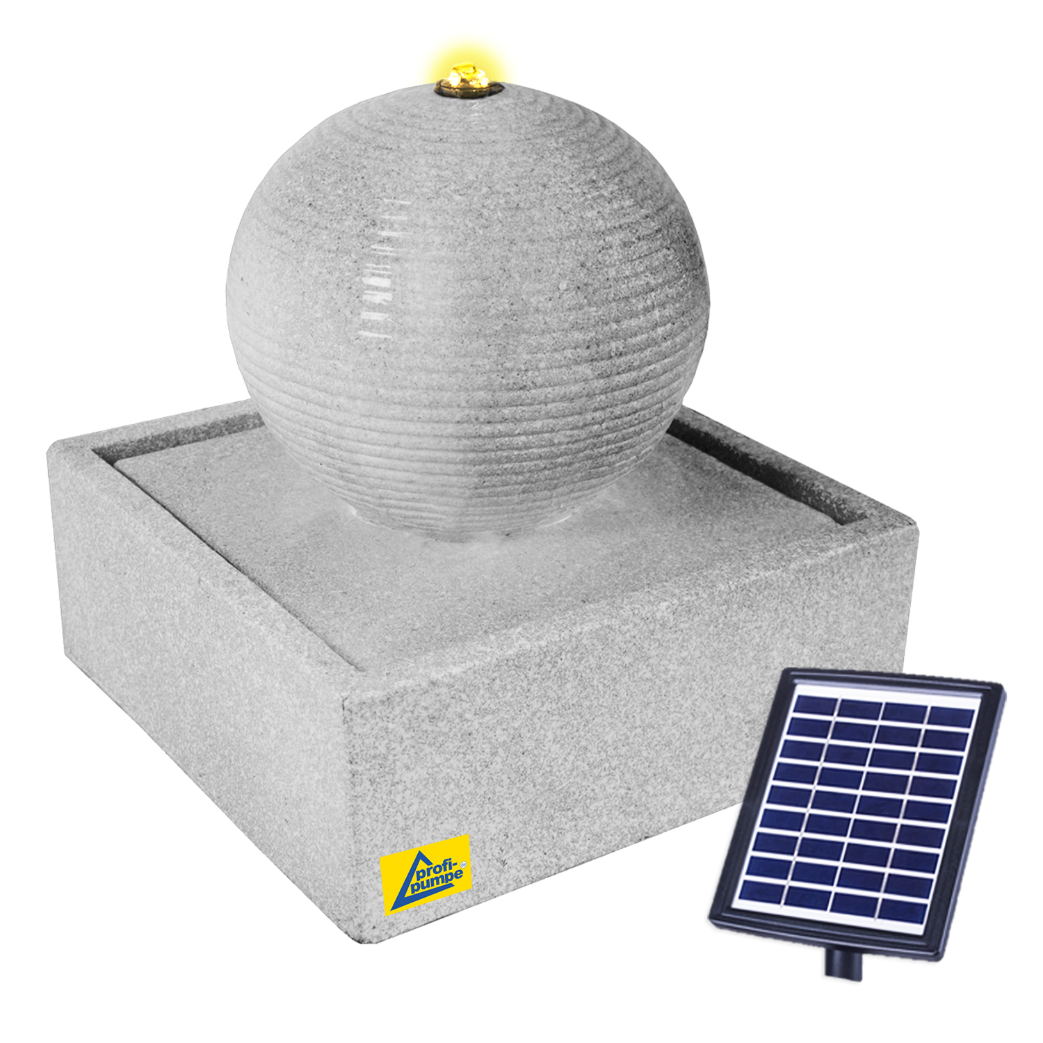 Hochwertiges, solarbetriebenes Pumpensystem für den Aussenbereich – mit LED-Beleuchtung.