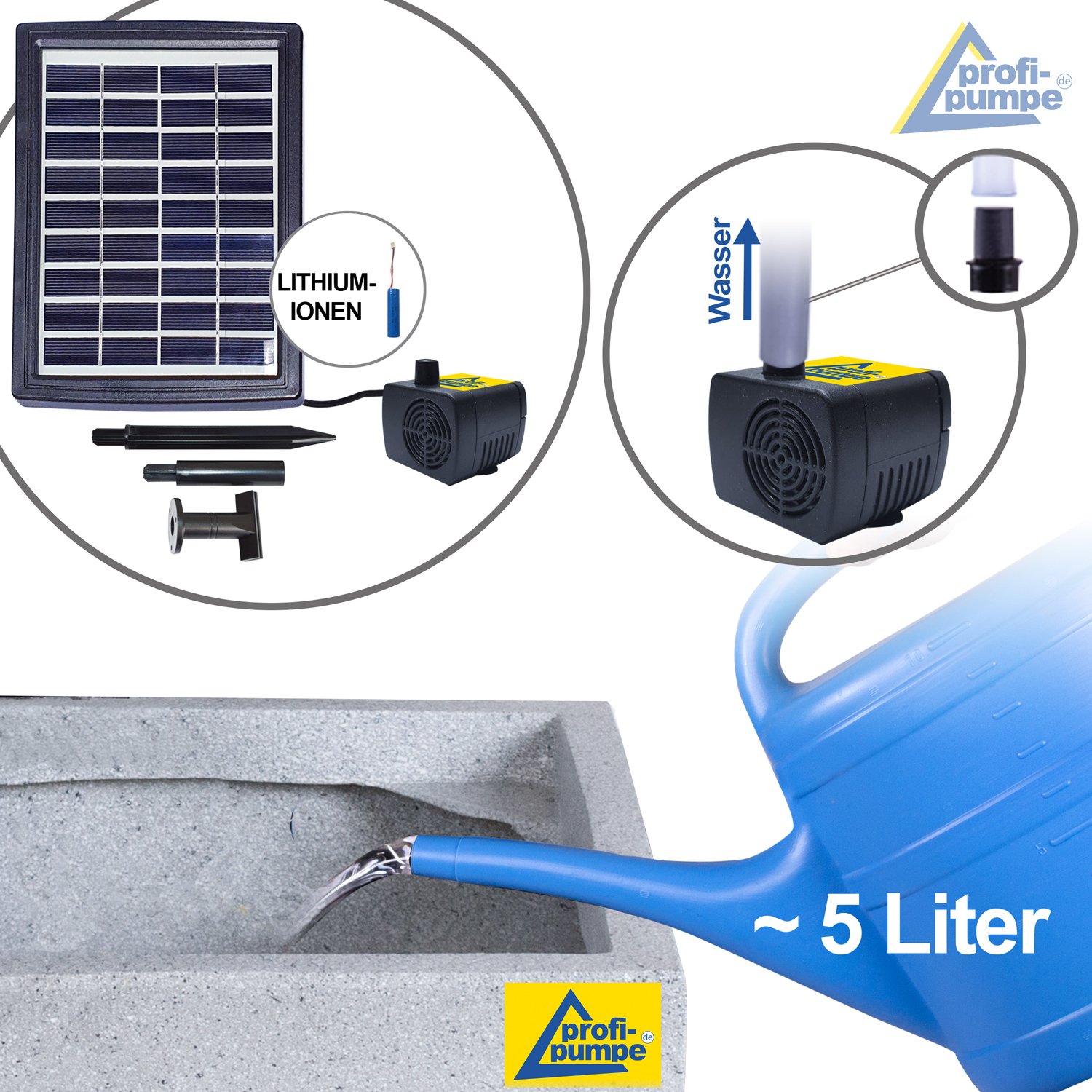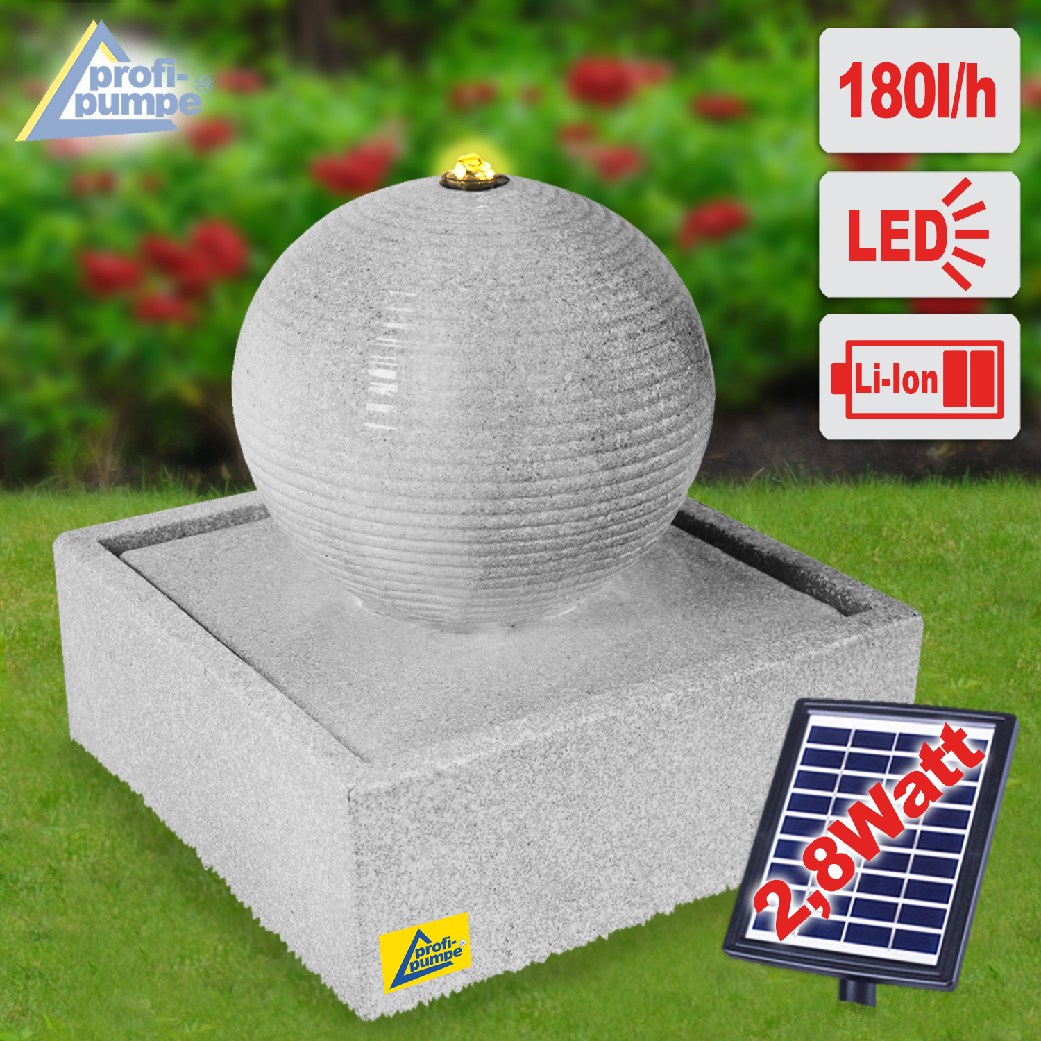Solarbetriebener Garten-Brunnen mit Li-Ion Akku und LED-Lichter