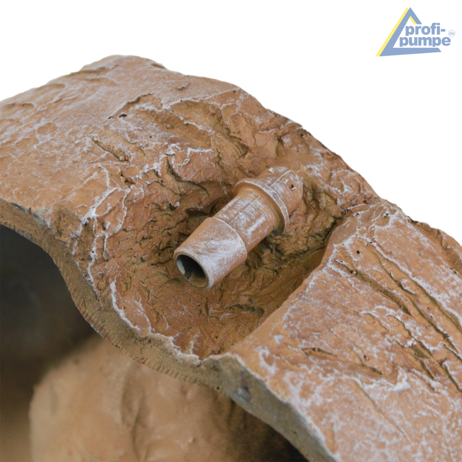 Bei der Nutzung als Zimmerbrunnen ist ein weiterer Behälter notwendig, um einen geschlossenen Wasserkreislauf zu gewährleisten.