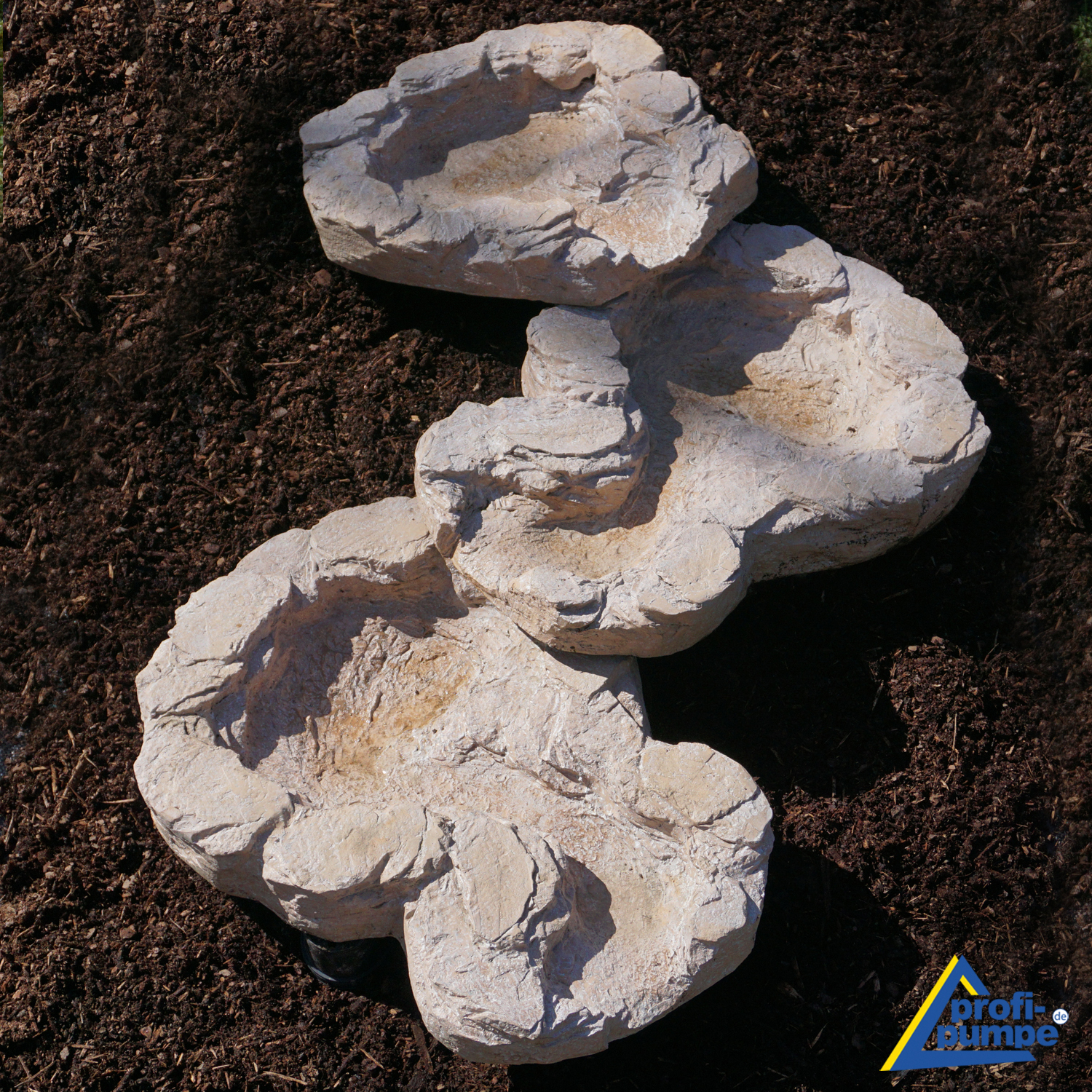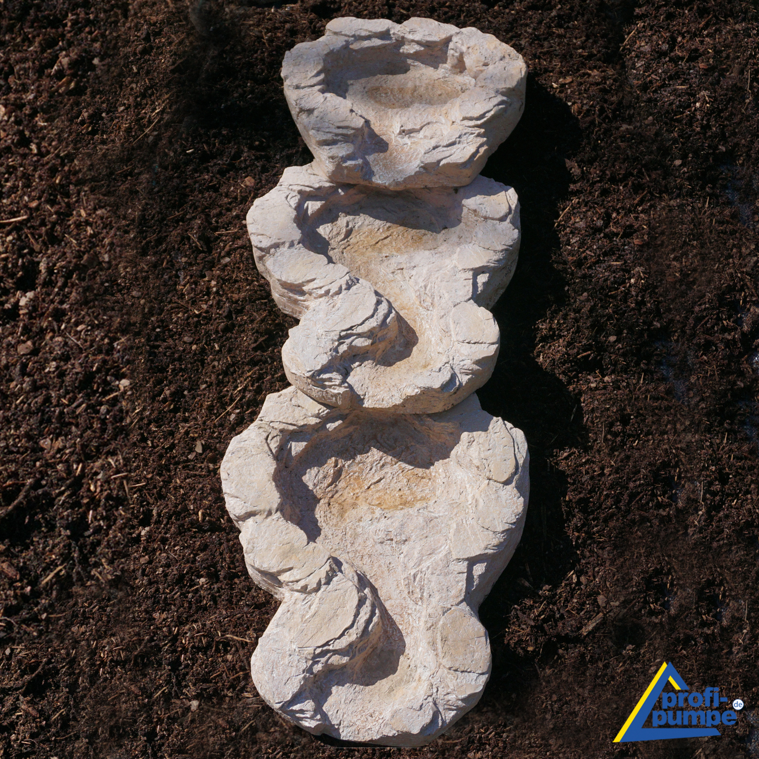 Der 3-teilige Gartenbrunnen Bachlauf QUELLBACH II besteht aus einer Schale mit Pumpenanschluss (obere Schale) und zwei großen Erweiterungs-Schalen. Die drei Schalen können beliebig zusammengesetzt und so den vorhandenen Platzverhältnissen optimal angepasst werden. Die massiven Schalen sind robust, schwer, frostsicher sowie wind- und wetterfest.