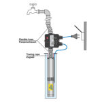 Der Durchflusswächter automatisiert und steuert das Einschalten der Kreisel- bzw. Tauchpumpe. Er überwacht den Druck im Rohrsystem von der Pumpe bis zum Verbraucher. Bei einer Wasserentnahme aus dem Rohrsystem nimmt der Druck ab. Fällt der Druck unter 1,5bar (einstellbar) schaltet der Durchflusswächter das angeschlossene Gerät (z.B. Kreiselpumpe) an. Diese versorgt die Verbraucher wieder mit Wasser. Wird der Verbraucher geschlossen, verringert sich der Durchfluss und die Pumpe wird abgeschaltet.