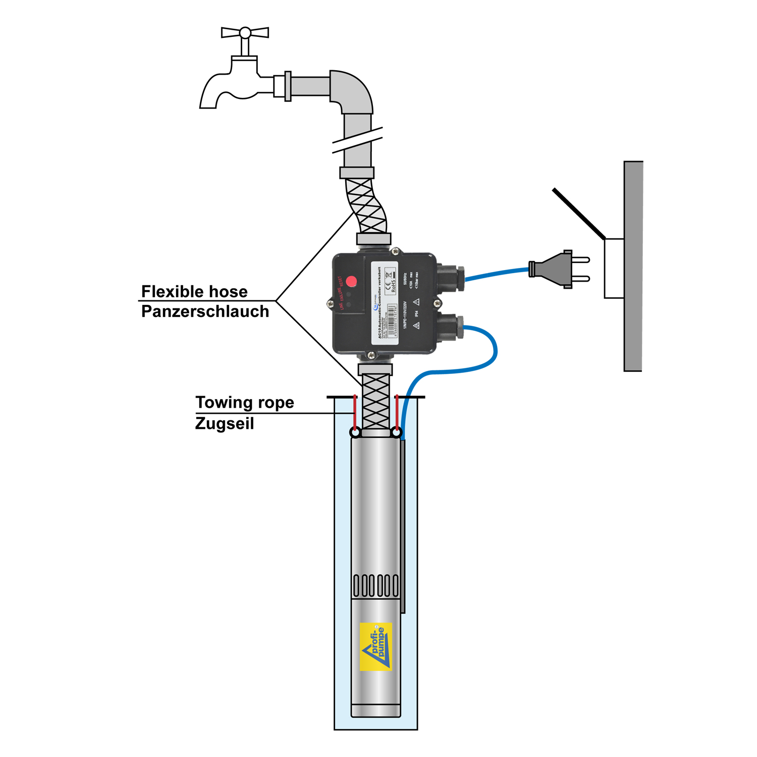 - druck-/durchflussgesteuertes, automatisches Einschalten von Tauch- und Kreiselpumpen