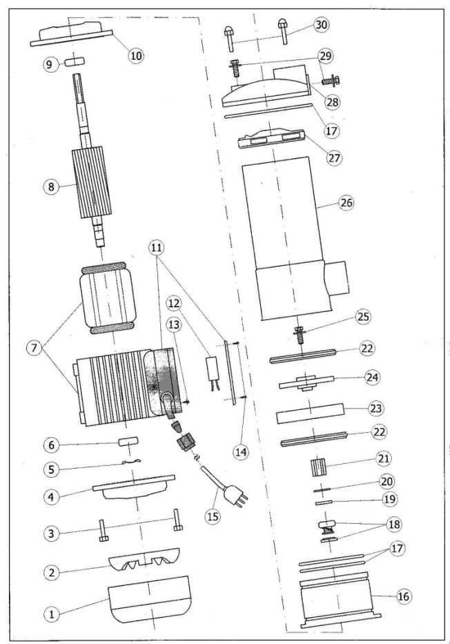 • Motor: Asynchron-Wechselstrom, Isolationsklasse F, IP44
