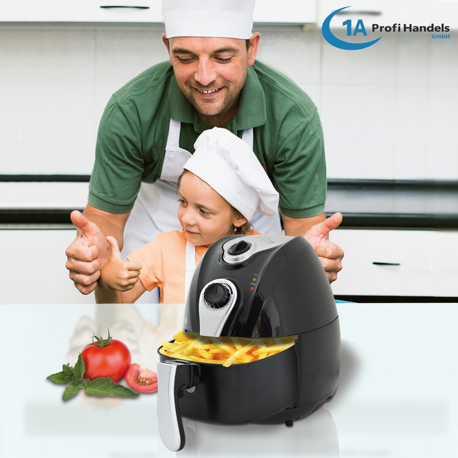 Mit der Heißluft-Multifritteuse ECO AIR-PROFI leben Sie gesünder. Die mit Heißluft zubereiteten Speisen sind einfach köstlich! Beim Erhitzen von Fetten und Ölen in herkömmlichen Fritteusen kommt es zur Freisetzung von Zersetzungsprodukten, insbesondere von gesundheitsschädlichem Acrylamid. In der Heißluftfriteuse jedoch nicht, da sie so gut wie ohne Fett oder Öl auskommt. Deswegen ist unsere Heißluft-Multifritteuse ECO AIR-PROFI eine echte Alternative zur normalen Öl-Fritteuse.