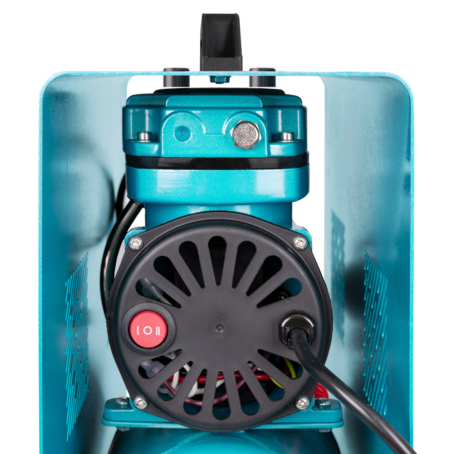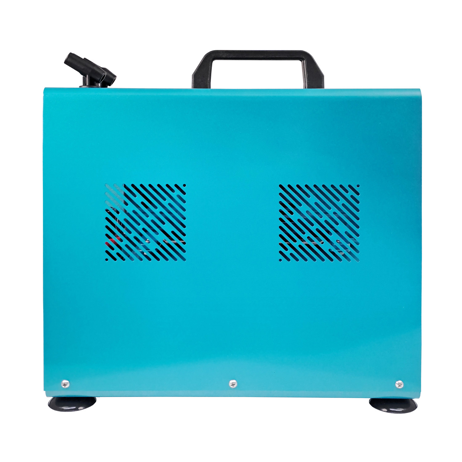 Der Airbrush-Kompressor ist ein energieeffizienter Zwei-Zylinder-Kolben-Kompressor. Er hat neben einem integrierten Lufttank auch einen integrierten Manometer, Luftfilter sowie Druck- und Durchflussregler. Im Lieferumfang des Airbrushkompressors mit Netzschalter ist außerdem ein Sicherheits- und Rückschlagventil enthalten.