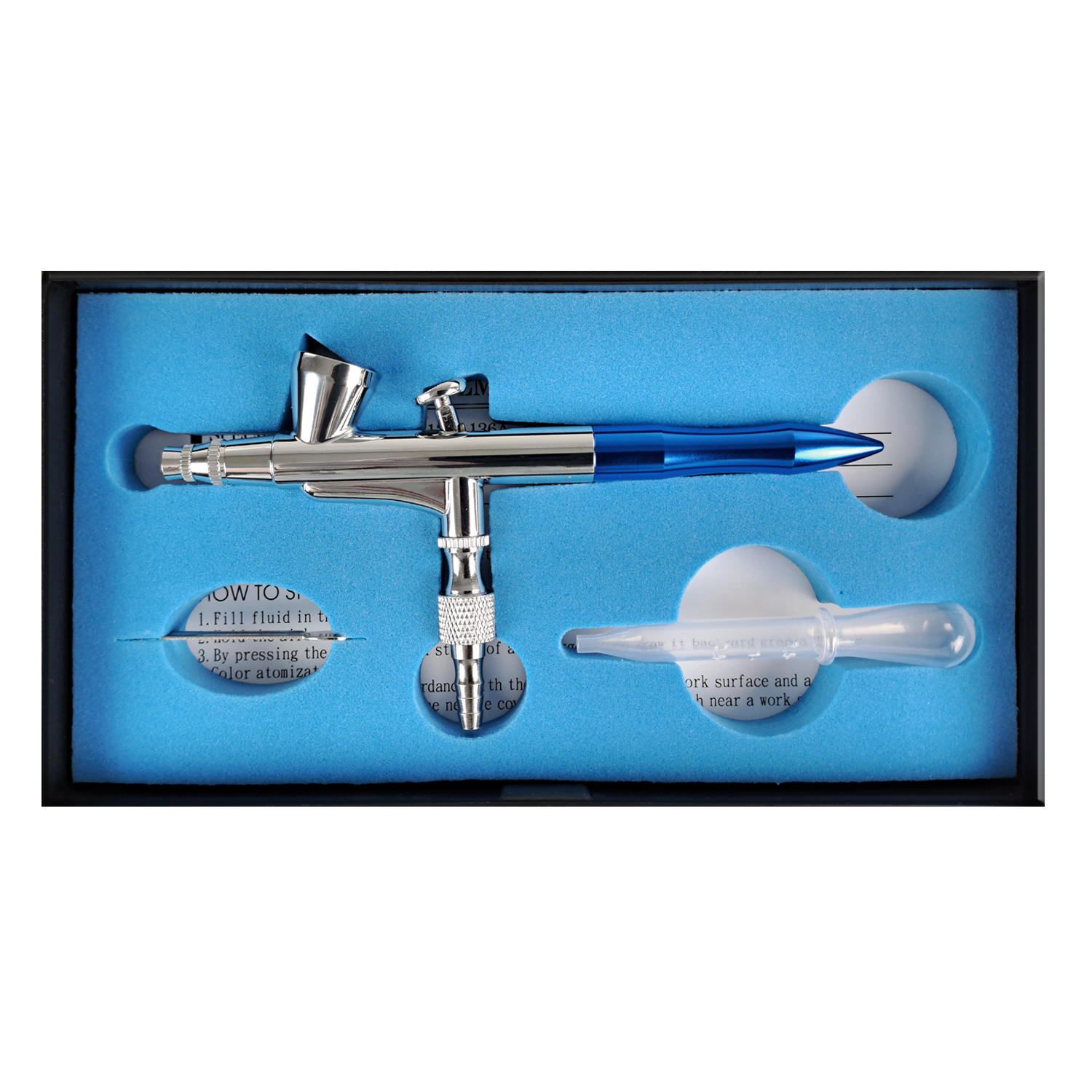 günstige Gravity-Sprühpistole mit 0,2mm Düse / 9ml Farbbehälter / Double-Action / Druckkontrolle / Arbeitsdruck: 1 – 3,5bar / Aufbewahrungsbox