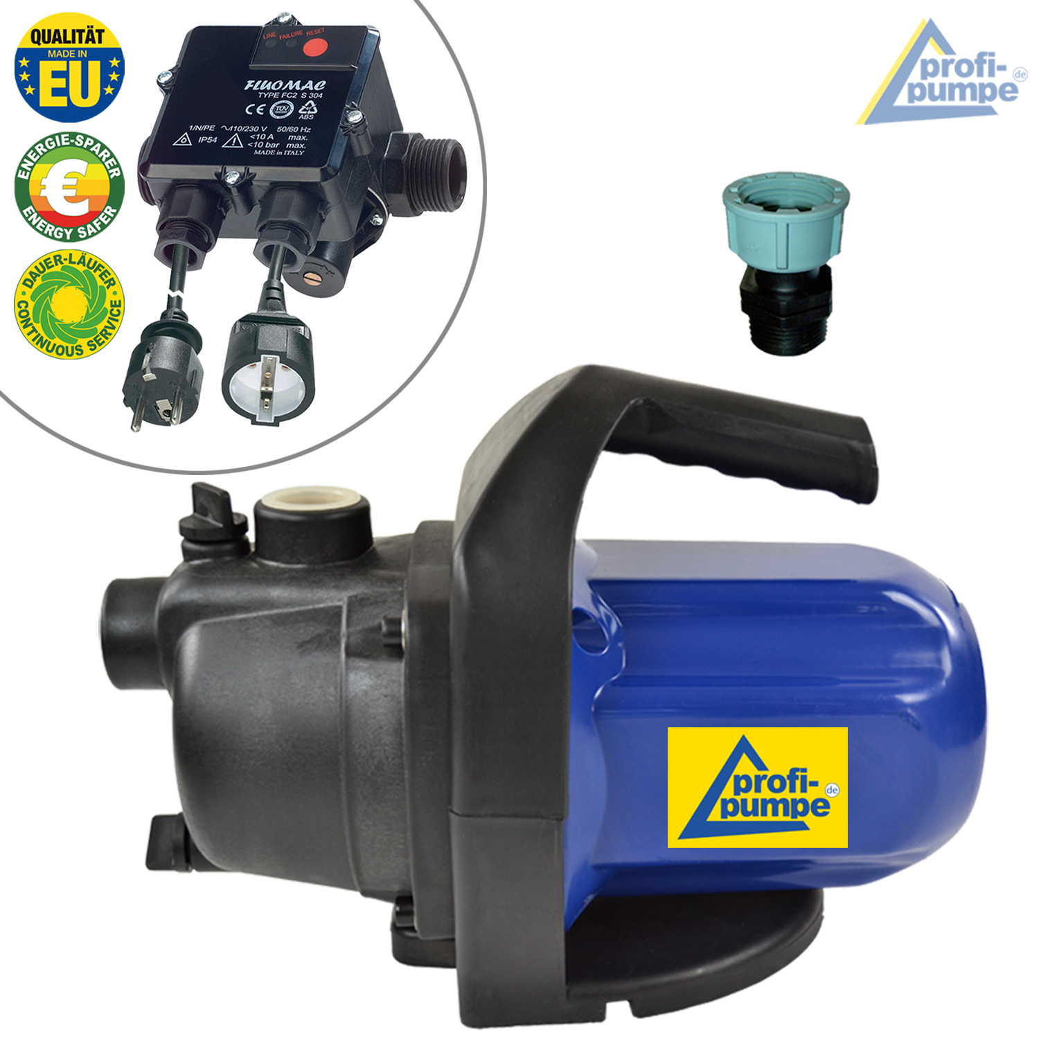 Der Einsatzbereich der Pumpe ist sehr vielseitig: Entweder als einfache Gartenpumpe oder als ausgereiftes Hauswasserwerk / Hauswasserautomat. Sie können mit dieser Pumpe und einem zusätzlichen Schaltgerät (wir empfehlen die verkabelten Durchflußwächter Fluomac, AC3, Brio oder AC23 aus unserem Lieferprogramm) die gesamte Brauchwasserversorgung in Ihrem Haus automatisiert steuern bzw. regeln. Mit den genannten Pumpensteuerungen können Sie das Hauswasserwerk zur Druckstabilisierung / Druckerhöhng einsetzen.