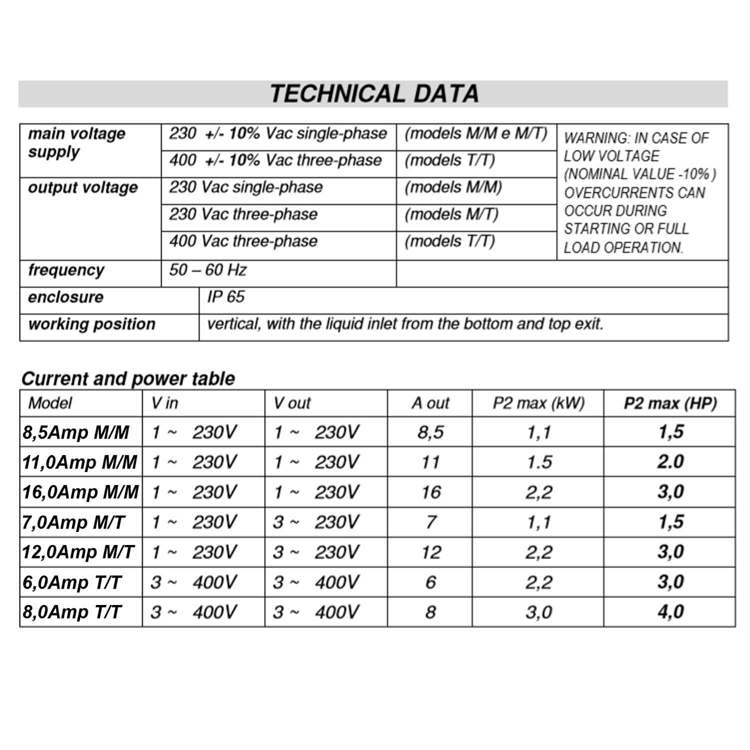 • Ausgangs-Spannung für Pumpe: 230V bei 25-50Hz (einphasig, M/M)