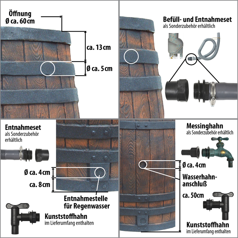 Set, bestehend aus Regentonnen Eichenfass 50, 120, 240 und 450L zum Vorteils-Preis