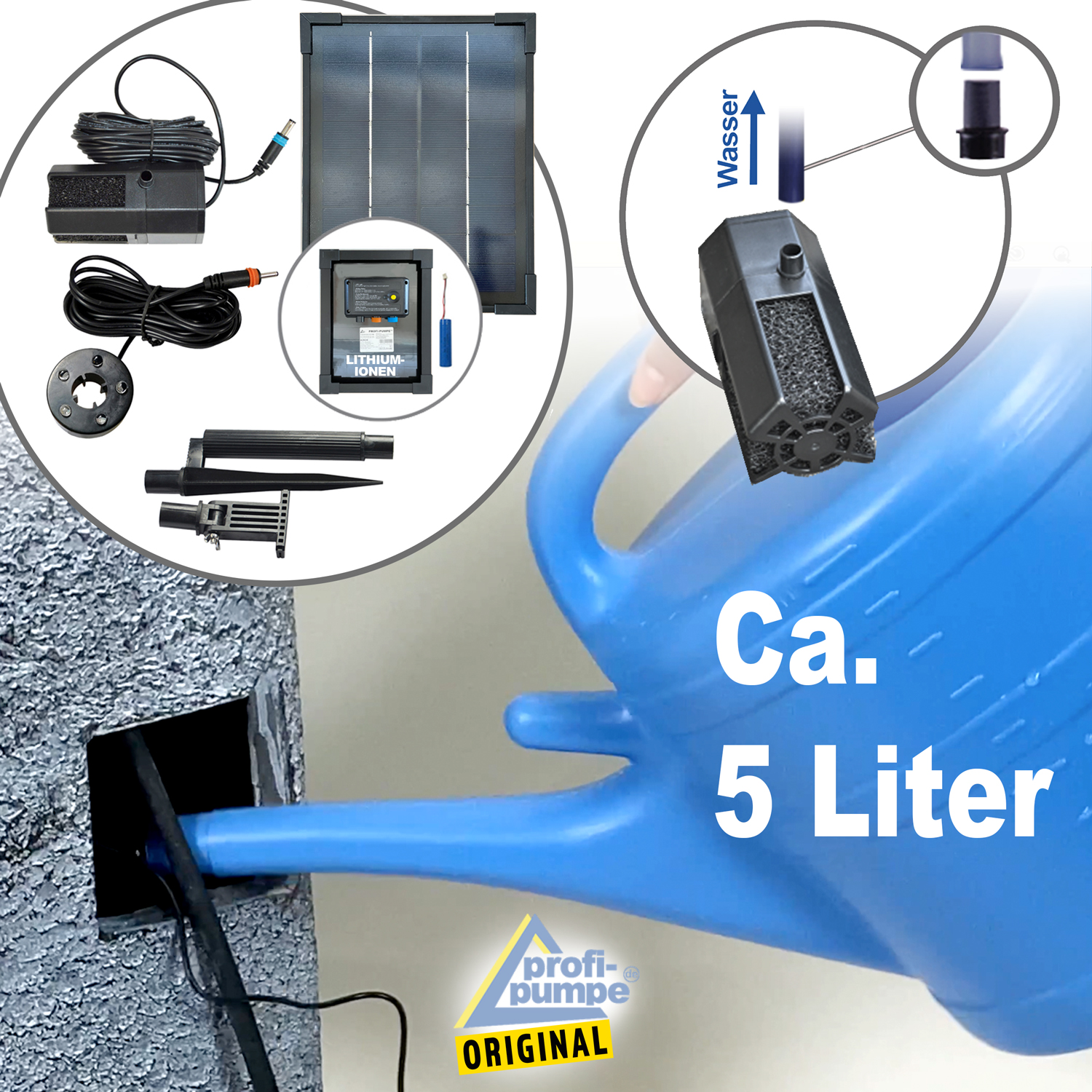 mit 5W Solarpanel, Förderhöhe max. 250l/h