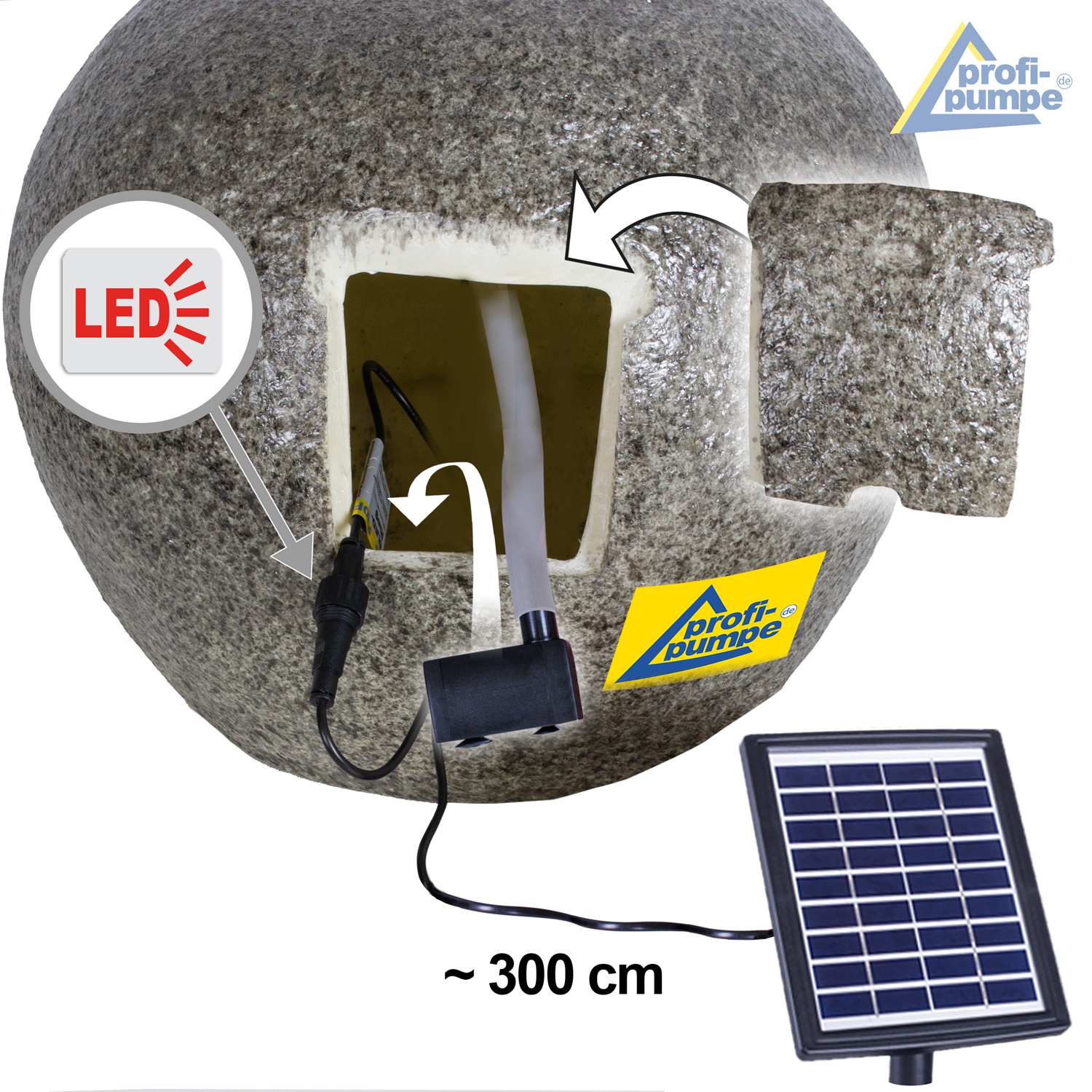 Solarbetriebener Garten-Brunnen mit Li-Ion Akku und LED-Licht