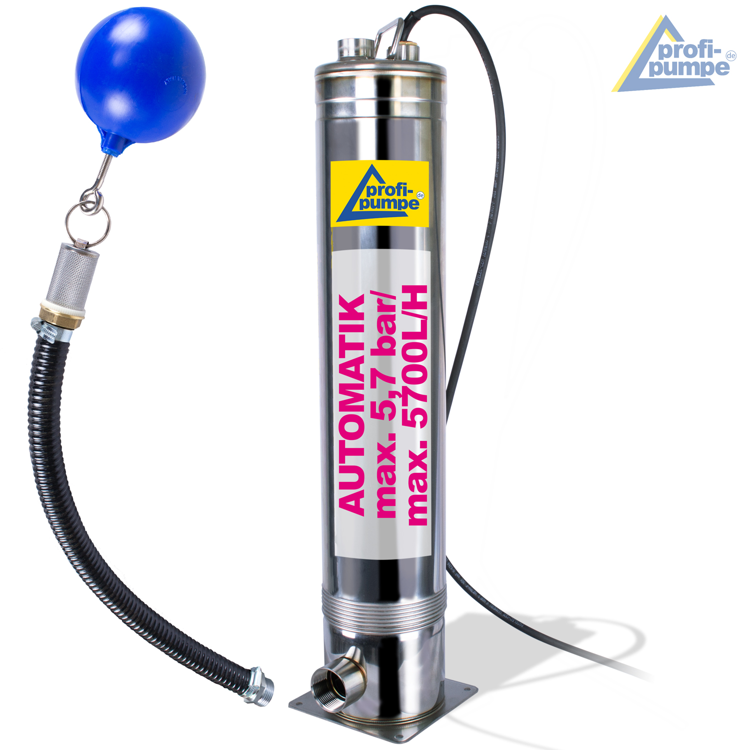 - Solide Qualitäts-Tauchdruckpumpe mit max 5,7bar und max 5700L/h