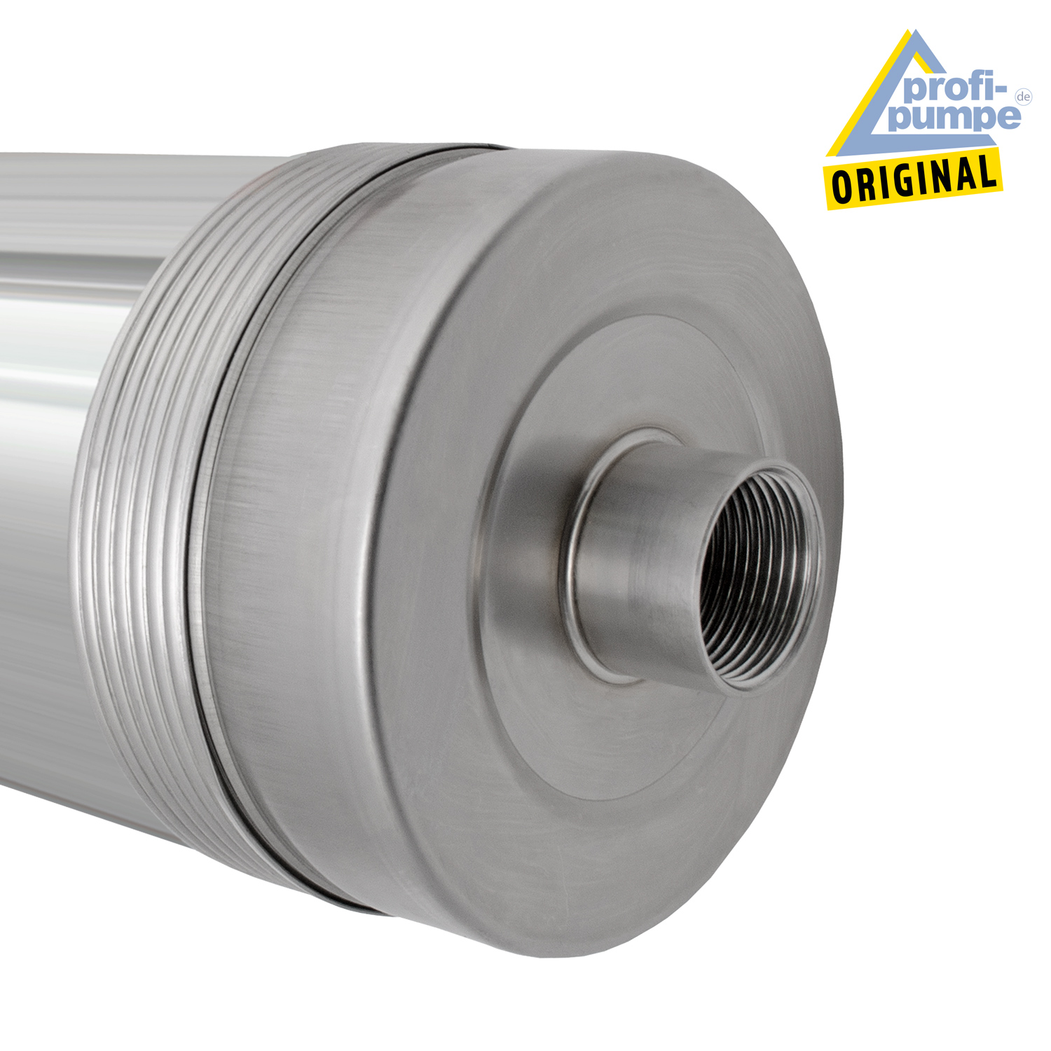 Bei Einsatz in der Regenwassernutzung muß das Wasser ausreichend, bis auf mind. 0,2mm vorgefiltert und frei von Fremdpartikeln sein. Durch den horizontalen Betrieb kann, im Gegensatz zu vertikalen Pumpen, wesentlich mehr Wasser aus dem Wasserspeicher entnommen werden. Dadurch erhöht sich das Nutzvolumen des Wasserbehälters um bis zu 50% (etwa bei Flachtanks). Bei Verwendung als Zisternenpumpe empfehlen wir, das optional erhältliche Ansaug-Set, bestehend aus 0,5m Schlauch, Filterkorb und Schwimmer-Kugel (Sonderzubehör) dazu zu erwerben. Dieses wird an der Saugseite der Pumpe angeschlossen und sorgt für die Entnahme von sauberem Wasser knapp unterhalb der Wasseroberfläche, was die Pumpenlebensdauer und die Funktionsfähigket wesentlich erhöht.