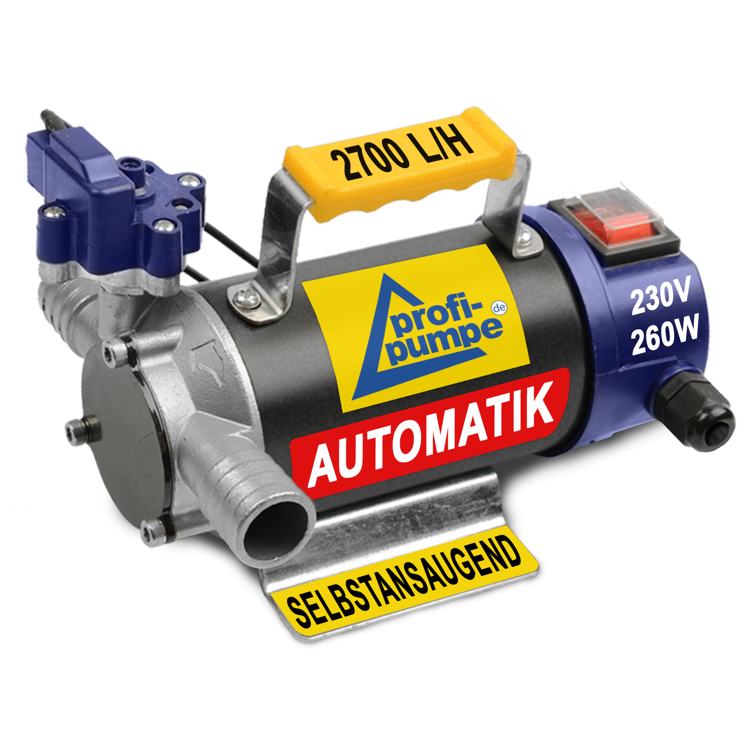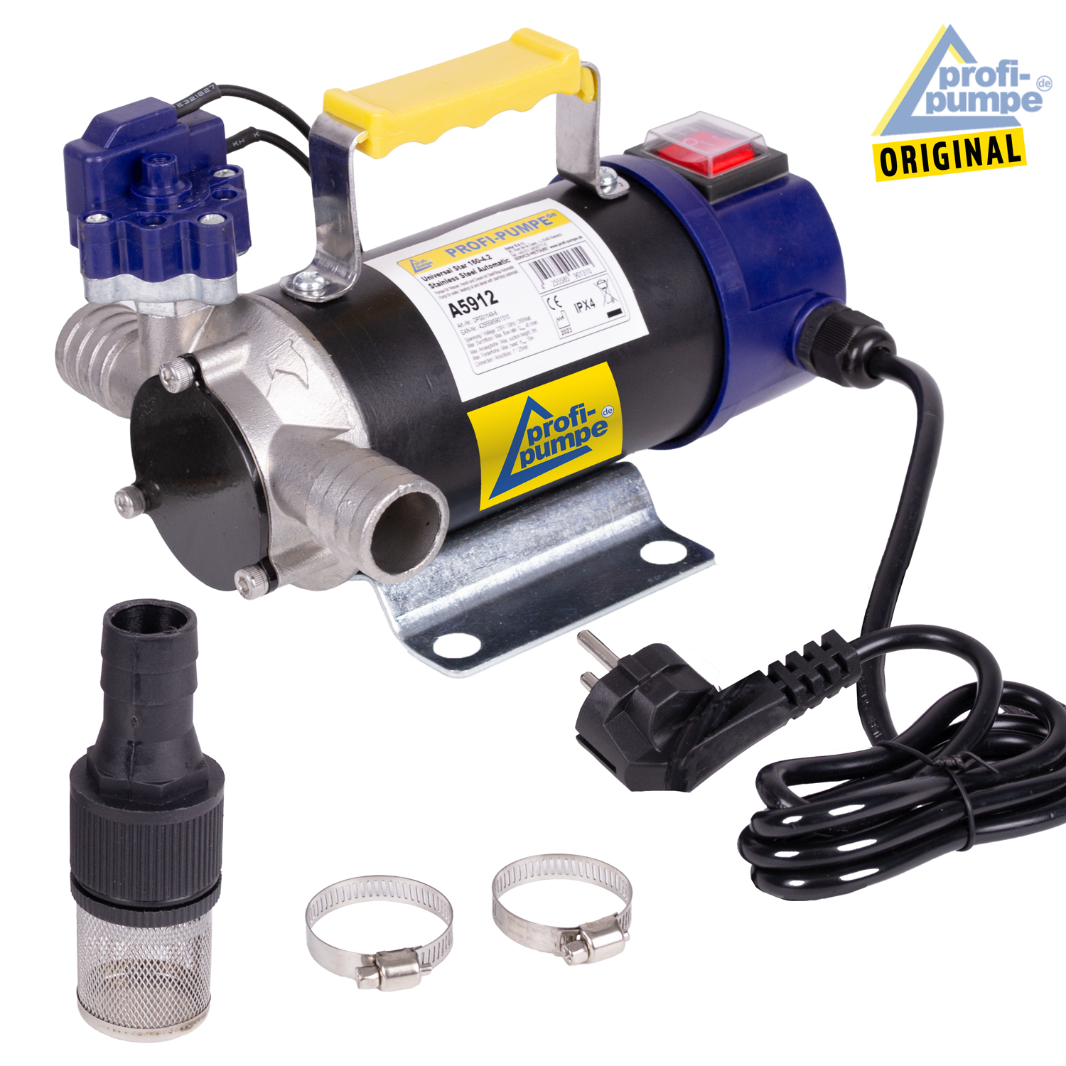 Die 230 Volt Universal-Pumpe mit START/STOP Automatik ist selbstansaugend nach erster Befüllung/Entlüftung. Die maximale Förderleistung beträgt 2700 l/h, die maximale Förderhöhe 10m.