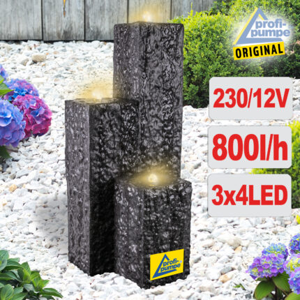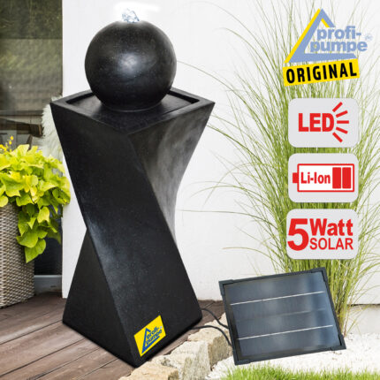 Solar – Brunnen “”GRANIT-BLACK-3″” mit Li-Ion-Akku und LED-Licht