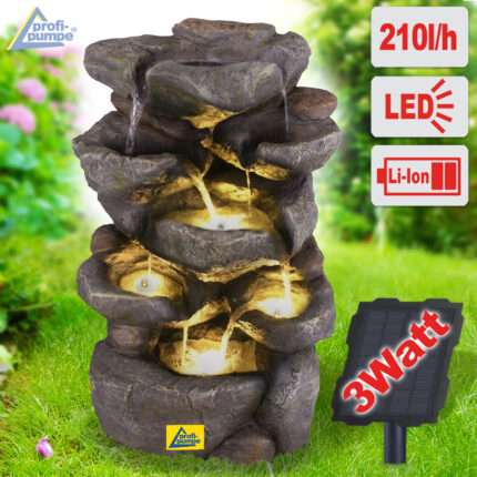 Solar – Gartenbrunnen & Wasserspiel “FELS-ZAUBER” mit Li-Ion-Akku