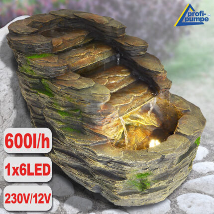 230V – Gartenbrunnen STEIN-KASKADE ALPEN mit LED-Licht