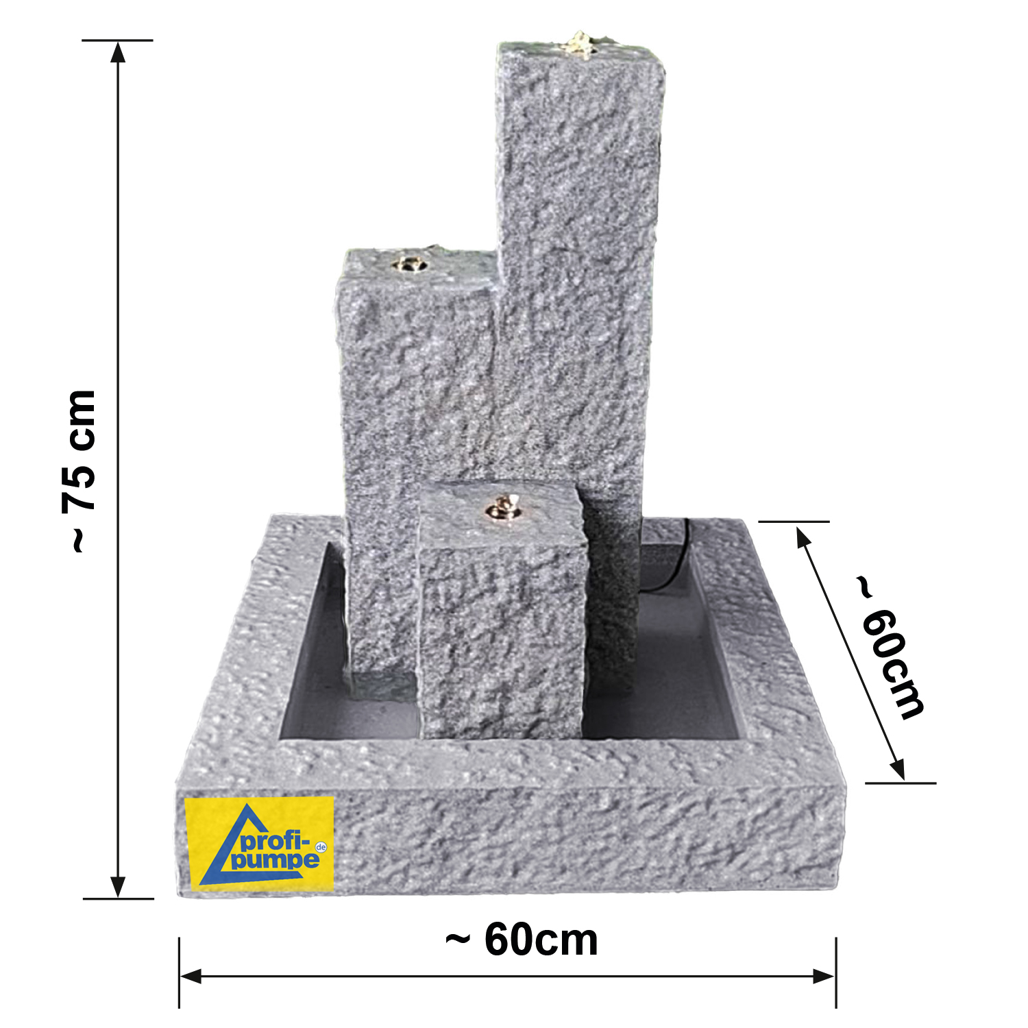 - steckfertiger, sofort einsatzbereiter Gartenbrunnen “TRIO-BASALT-2 grau”