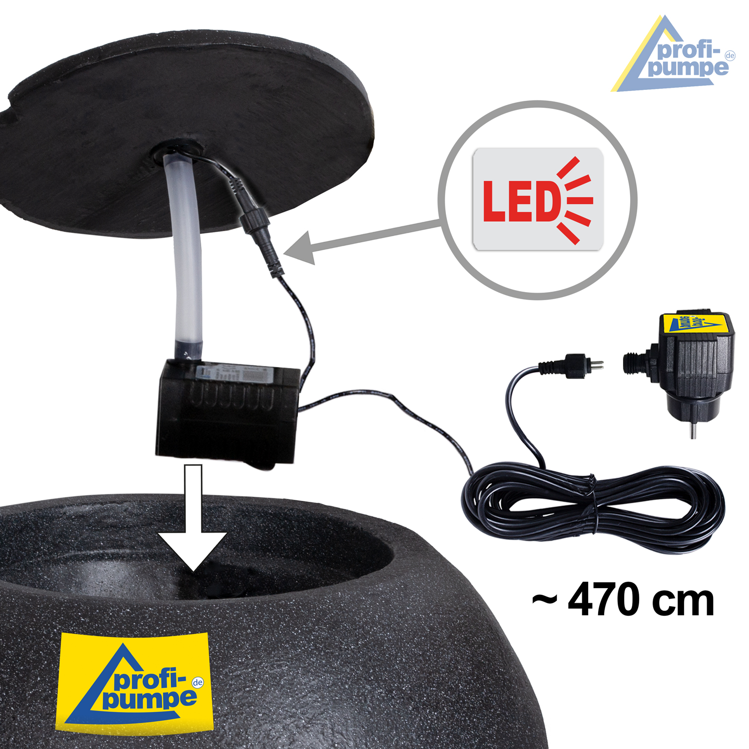 • LED-Gartenbrunnen für den Innen- und Außenbereich mit 230/12V-Netzadapter