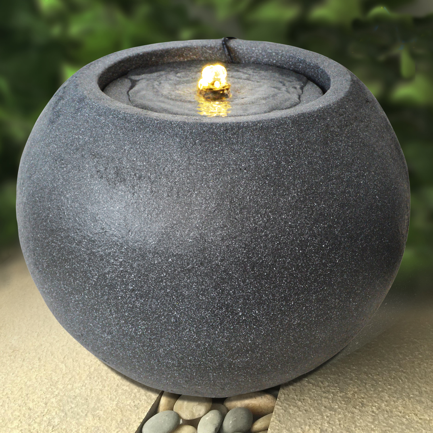 Der Gartenbrunnen “HARMONY” ist für den Innen- und Außenbereich geeignet. Betrieben wird der stilvolle Gartenbrunnen mit einem 230/12-Volt Netzadapter. Mit der wirklichkeitsgetreuen Stein-Dekoration des kugelförmigen Brunnens und den klaren Formen sorgt der Gartenbrunnen für eine harmonische Atmosphäre und Entspannung. Das Lebenselixier Wasser belebt Wohnzimmer, Esszimmer, Flure und Eingangsbereiche, Wintergärten oder Balkone, Terrassen und Gärten im privaten wie gewerblichen Umfeld.