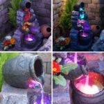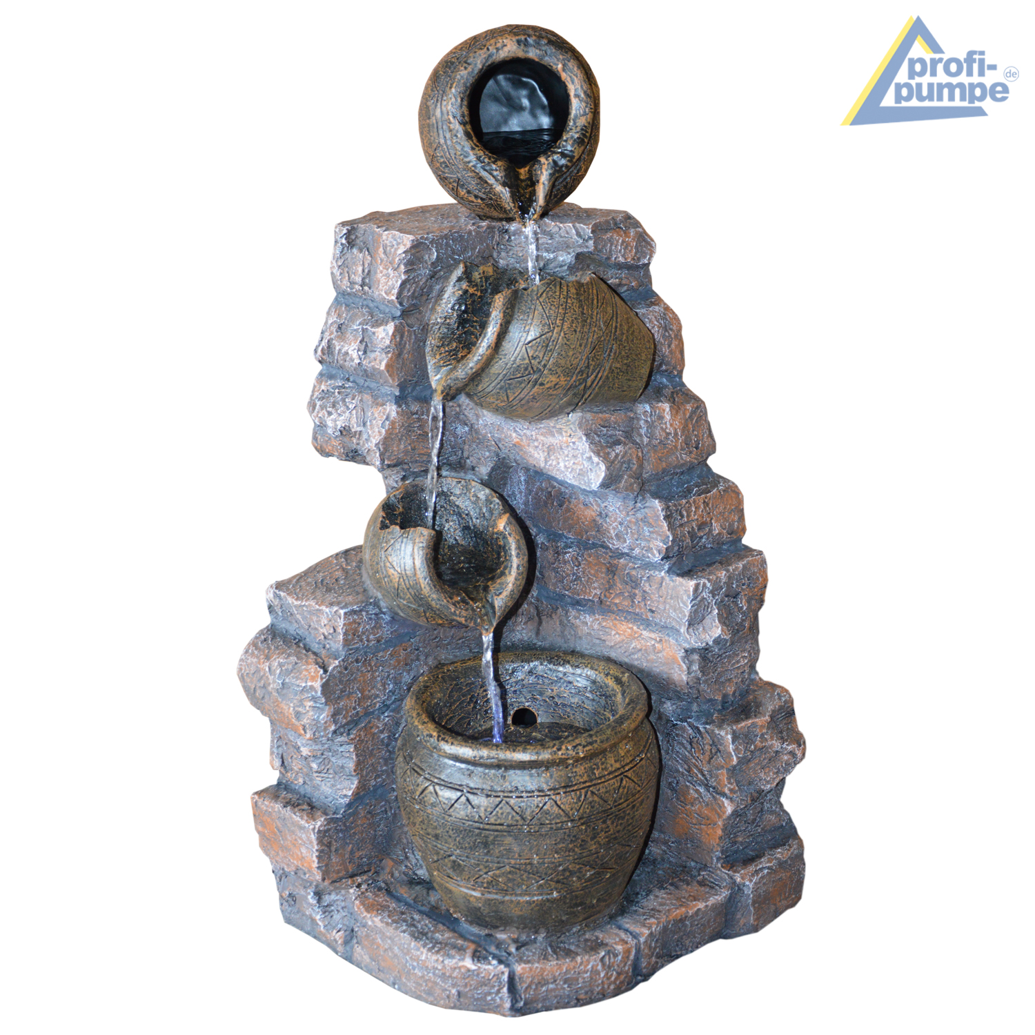 B-Ware Gartenbrunnen TONZIEGEL & KRÜGE mit 3 RGB LED-Licht-230V