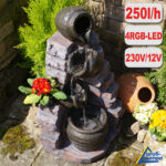 B-Ware Gartenbrunnen TONZIEGEL & KRÜGE mit 4 RGB LED-Licht-230V