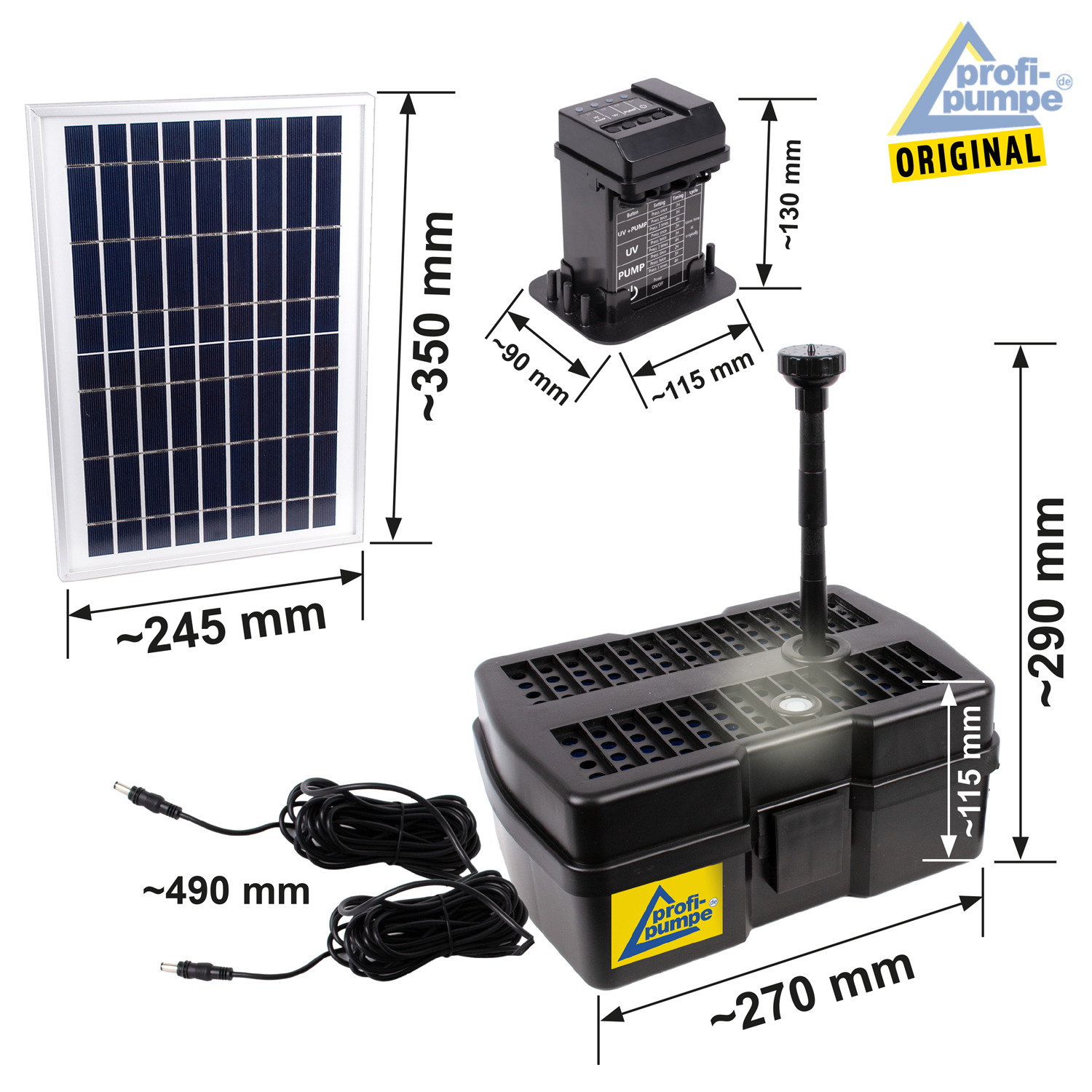 - Hoher Wirkungsgrad und Lebensdauer der Pumpe durch neueste, bürstenlose DC-Motortechnologie