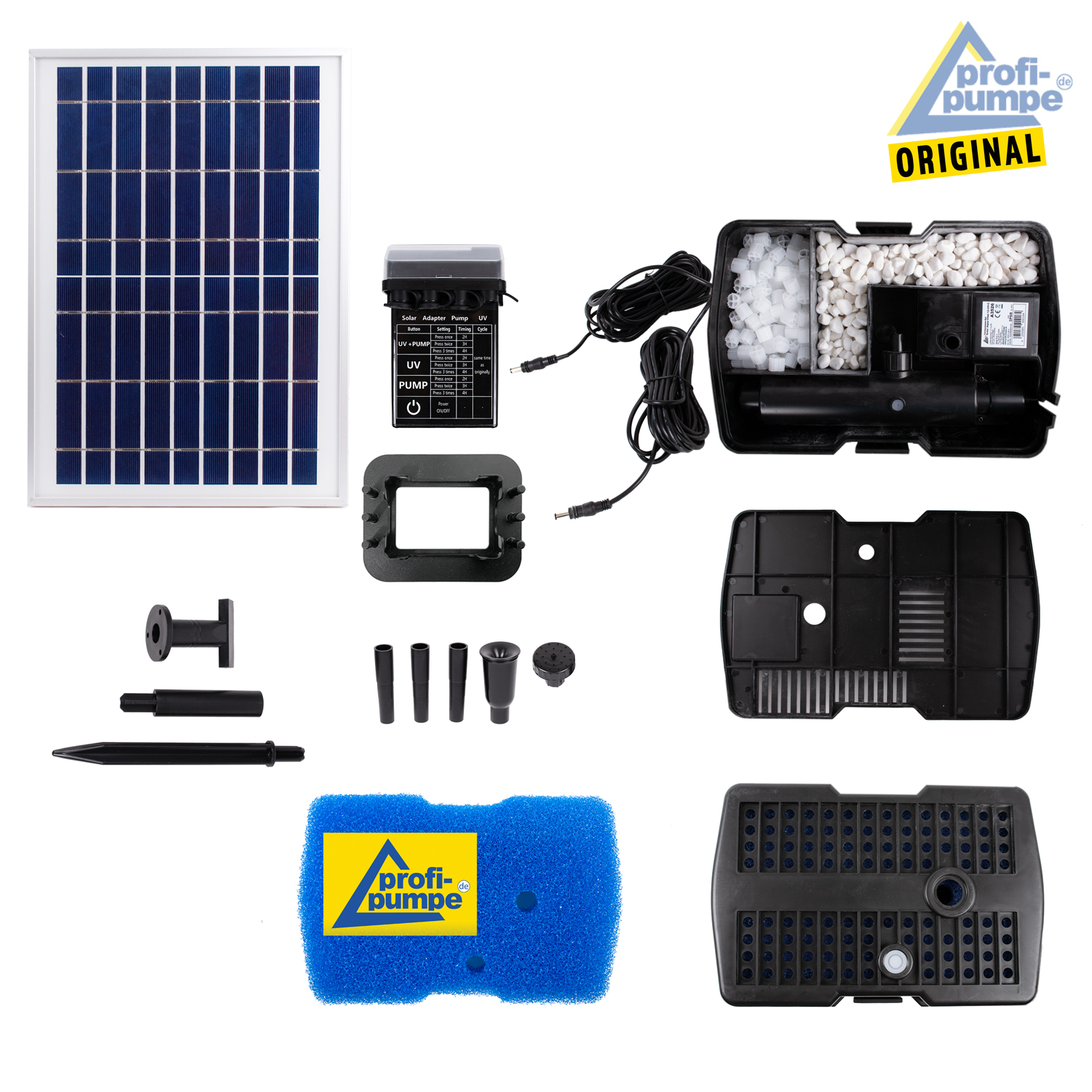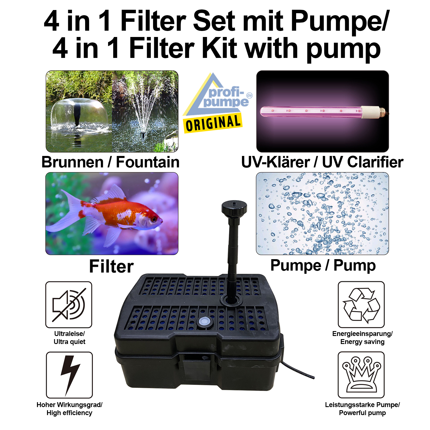 - Filterkasten zum Filtern des Wassers, um Ihren Teich sauber und gesund zu halten