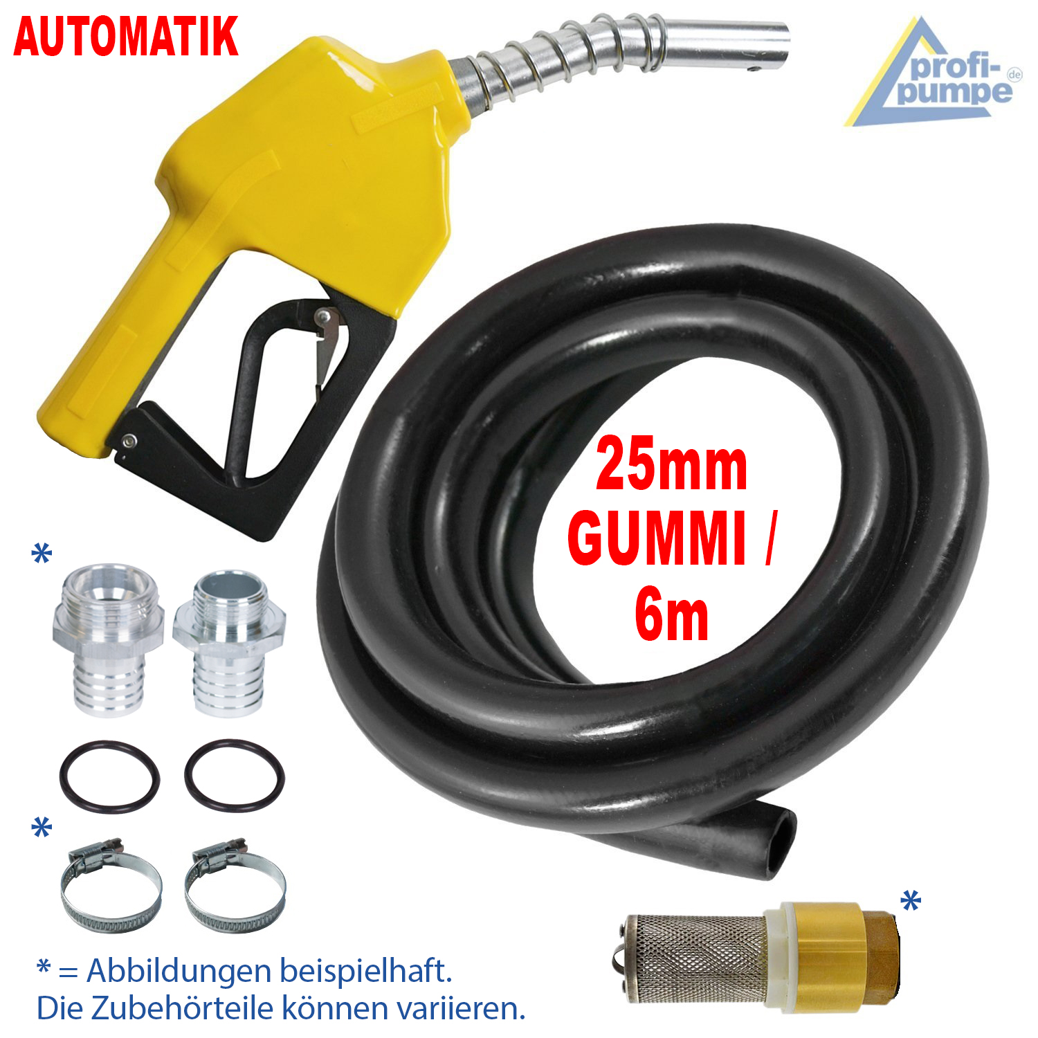 Das Diesel-Zubehör Paket 2 mit Gummi-Schlauch und Automatik-Zapfpistole ist geeignet für den Einsatz mit Dieselpumpen/ Heizölpumpen/ Kraftstoffpumpen, aber auch alle Arten von Wasserpumpen (Tauchpumpen, Brunnenpumpen, Kreiselpumpen, Jetpumpen uvm.)