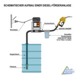 Примечание: Die Dieselpumpe und die Saugleitung sind bei der Inbetriebnahme blasenfrei mit Diesel zu befüllen. Ein Rückschlagventil muss unbedingt am Ende der Saugleitung montiert und dicht sein.