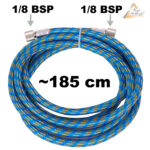 Der gewebeummantelte Gummischlauch verbindet die AirBrush-Pistole mit dem Kompressor. Durch eine textile Ummantelung ist der Schlauch sehr haltbar und strapazierfähig. Die Länge von 1.85m gibt ausreichend Bewegungsfreiheit.