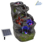 Gartenbrunnen FELS-KASKADE mit Pumpe und 4 RGB LED-Licht – Hybrid Solarbetrieb