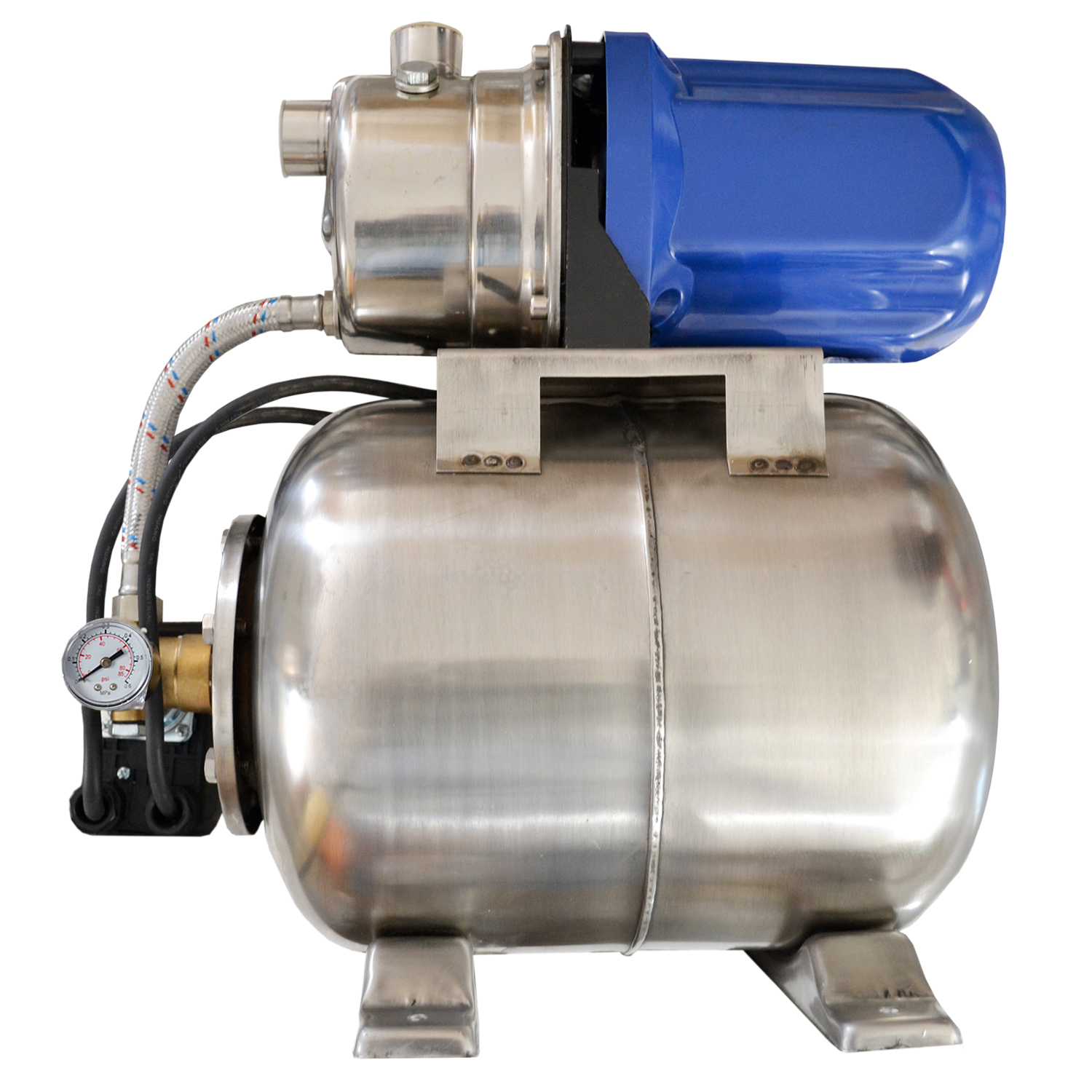 Das Hauswasserwerk besteht aus einer hochwertigen 600-Jetpumpe mit Edelstahl-Druckkessel und Edelstahl-Pumpe. Das Hauswasserwerk hat ein integriertes Manometer sowie einen Druckschalter.
