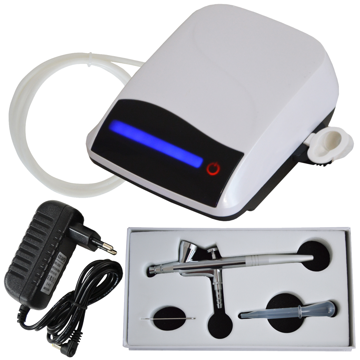 Der öl- und wartungsfreie Mini-Airbrush-Kompressor Carry V-TC ist mit einer innovativen Sensor-Touch-Control-Technologie и 5 Power-Stufen ausgestattet. Carry IV ist für alle Arbeiten mit handelsüblichen Airbrush Farben geeignet. Mit nur 47dB ermöglicht der Mini-Kompressor angenehmes Arbeiten auch in kleineren, geschlossenen Räumen (bitte für eine Farbnebelabsaugung sorgen). Sein kompaktes Design, geringes Gewicht und die mitgelieferte Universal-Airbrush-Pistole erleichtern den mobilen Einsatz. Dieser kompakte Kompressor ist perfekt geeignet, um kleinere Arbeiten unterwegs zu erledigen. Mögliche Anwendungsgebiete neben Nail-Art: Kosmetik & Beauty (Makeup, Haartönung, Haarpflege, Spray Tanning), Körper-Kunst (Body-Painting, Tattoo, Maskengestaltung), Hobby (Blumen/ Gestecke, Modellbau, Keramik/ Tonwaren, Textilien), kleinere Kfz-Designs (Tankdeckel/ Helme), technische Illustrationen/ Fotonachbesserungen und die Dekoration von Lebensmitteln (Torten/ Cupcakes). Es stehen Ihnen praktisch unbegrenzte Möglichkeiten für Airbrushing zur Verfügung.