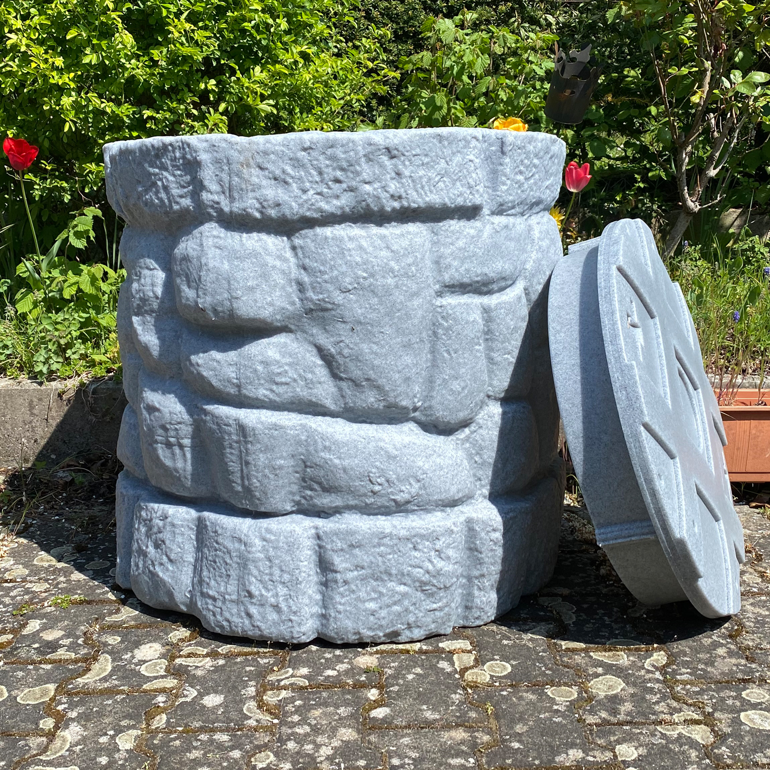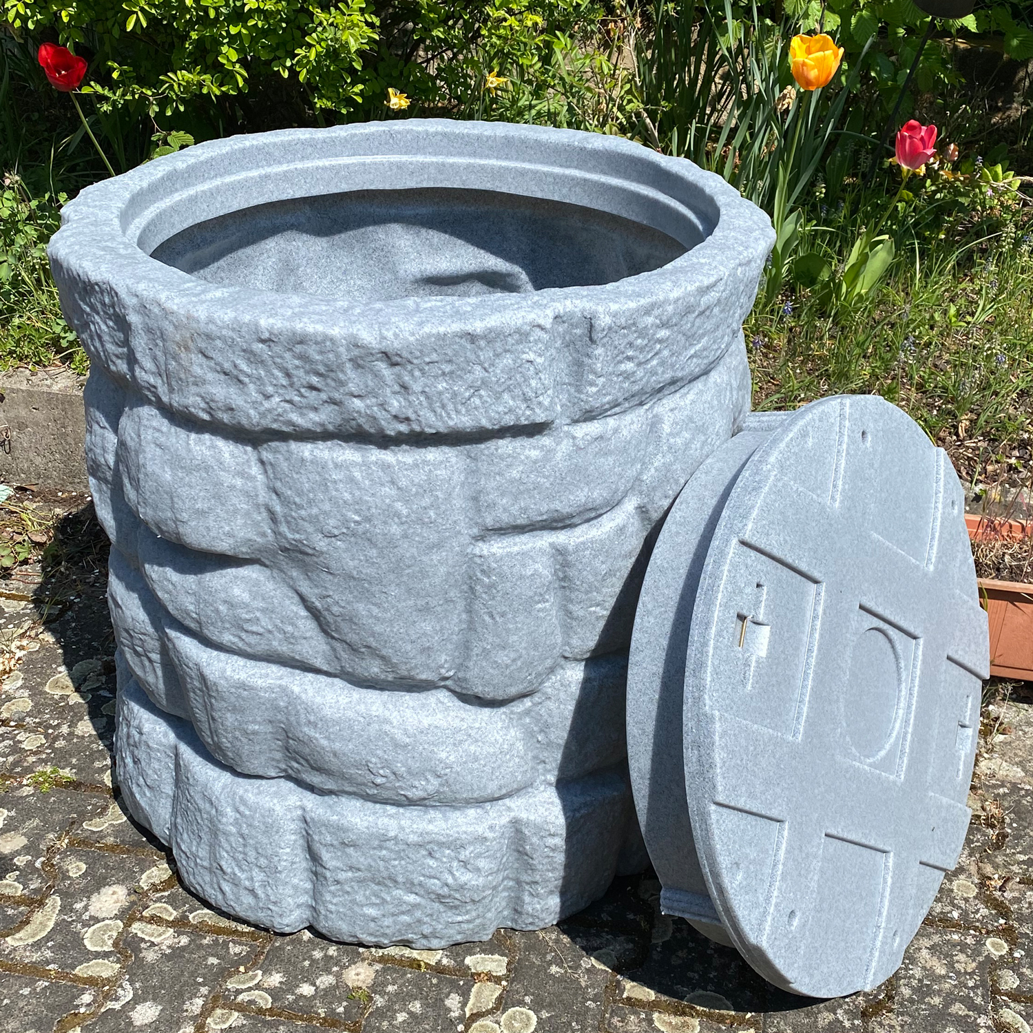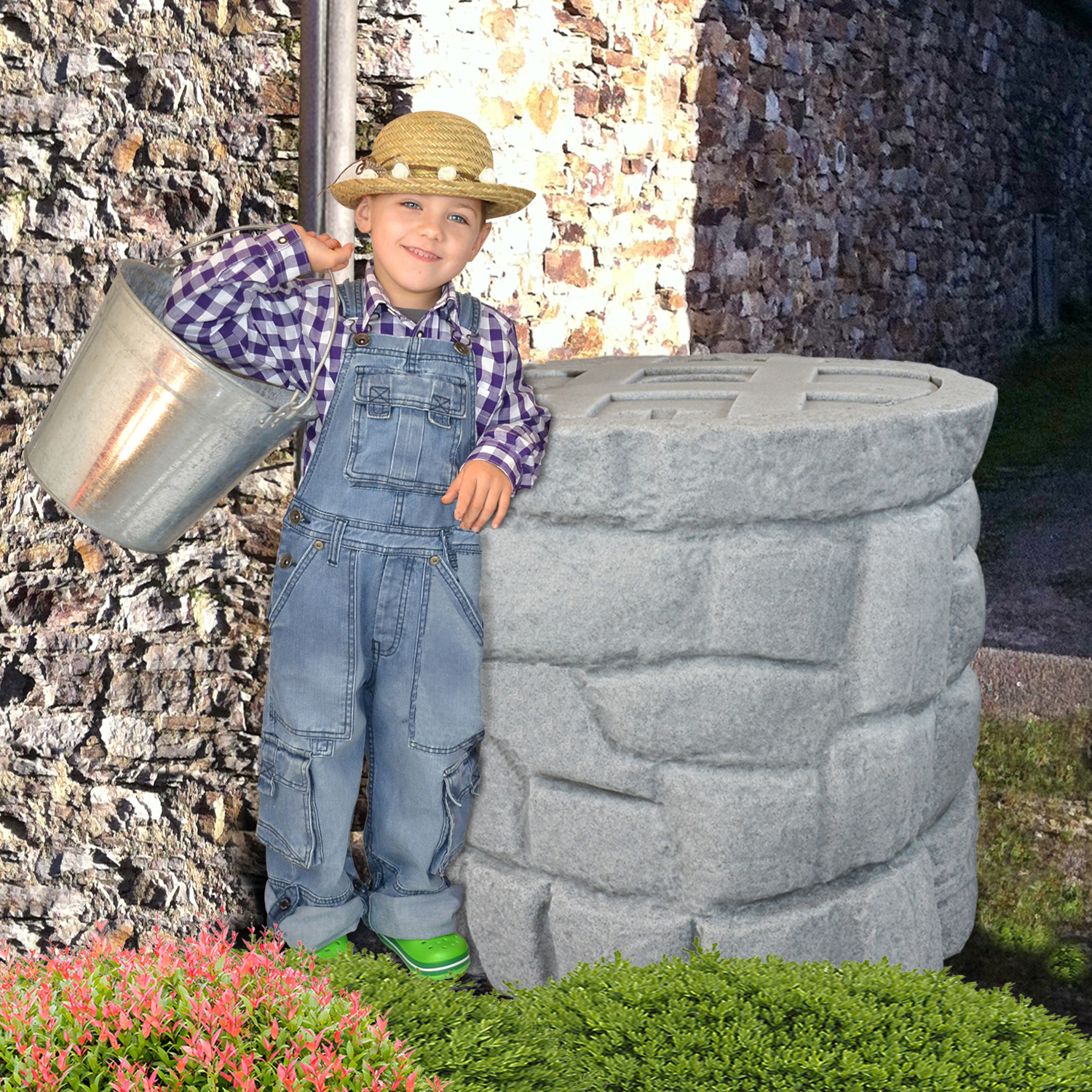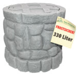 Dieser “Brunnen” ist nicht nur ein Blickfang in Ihrem Garten, sondern auch nützlich zugleich! Ob als Regenwasserspeicher, als Teichfilterabdeckung, als Pumpengehäuse oder einfach als Gartenzierde. Diese dekorative Designer-Regentonne ist ein Schmuckstück für jeden Garten. Der “Märchenbrunnen” gibt Ihrem Garten den besonderen Zauber!