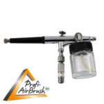 Die Airbrush-Pistole “Double Action Gun 134s” mit 0,2mm / 0,3mm / 0,5mm NADEL/DÜSE Kombination und 2 verschiedenen Farbbehältern (7ccl und 22ml) ist besonders für den Beginner zum Kennenlernen der einzelnen Techniken und für ein zügiges Arbeiten optimal geeignet. Damit lassen sich sowohl feine Linien ziehen, als auch größere Flächen airbrushen. Für größere Farbmengen wird der 22ml-Glasbehälter und für kleinere Farbmengen der 7ccl Metallaufsatz verwendet.