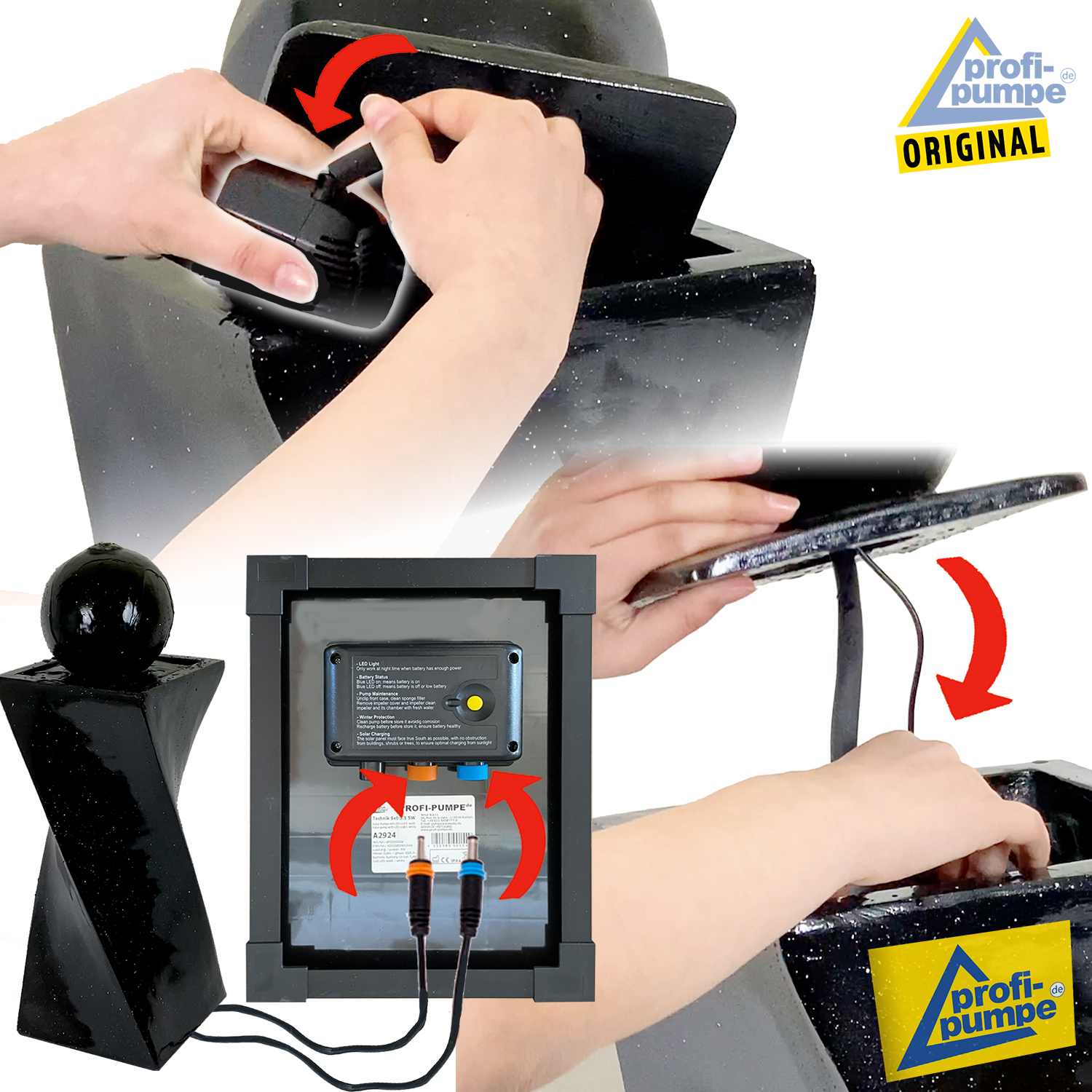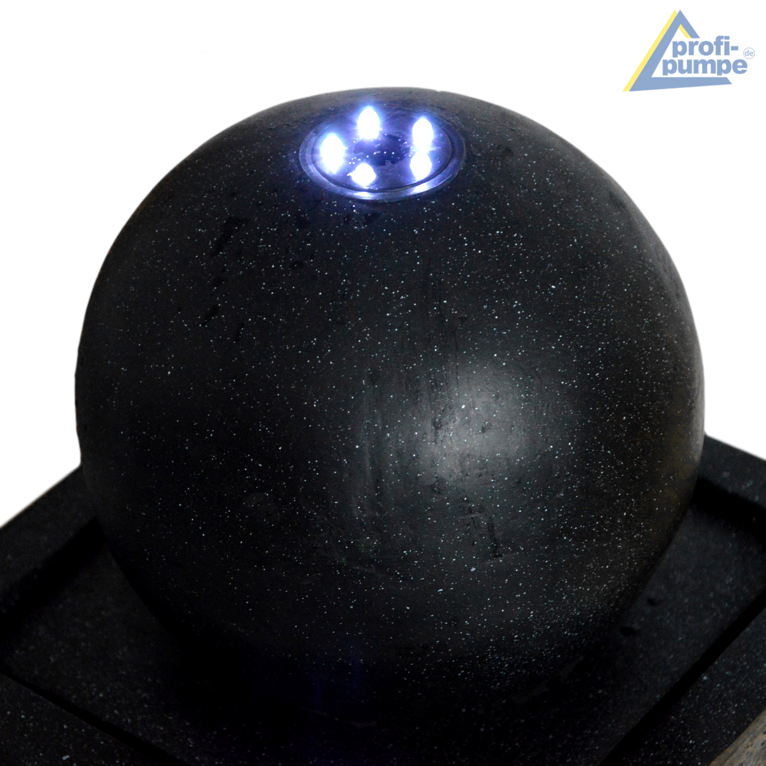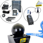 Solar – Brunnen “”GRANIT-BLACK-3″” mit Li-Ion-Akku und LED-Licht