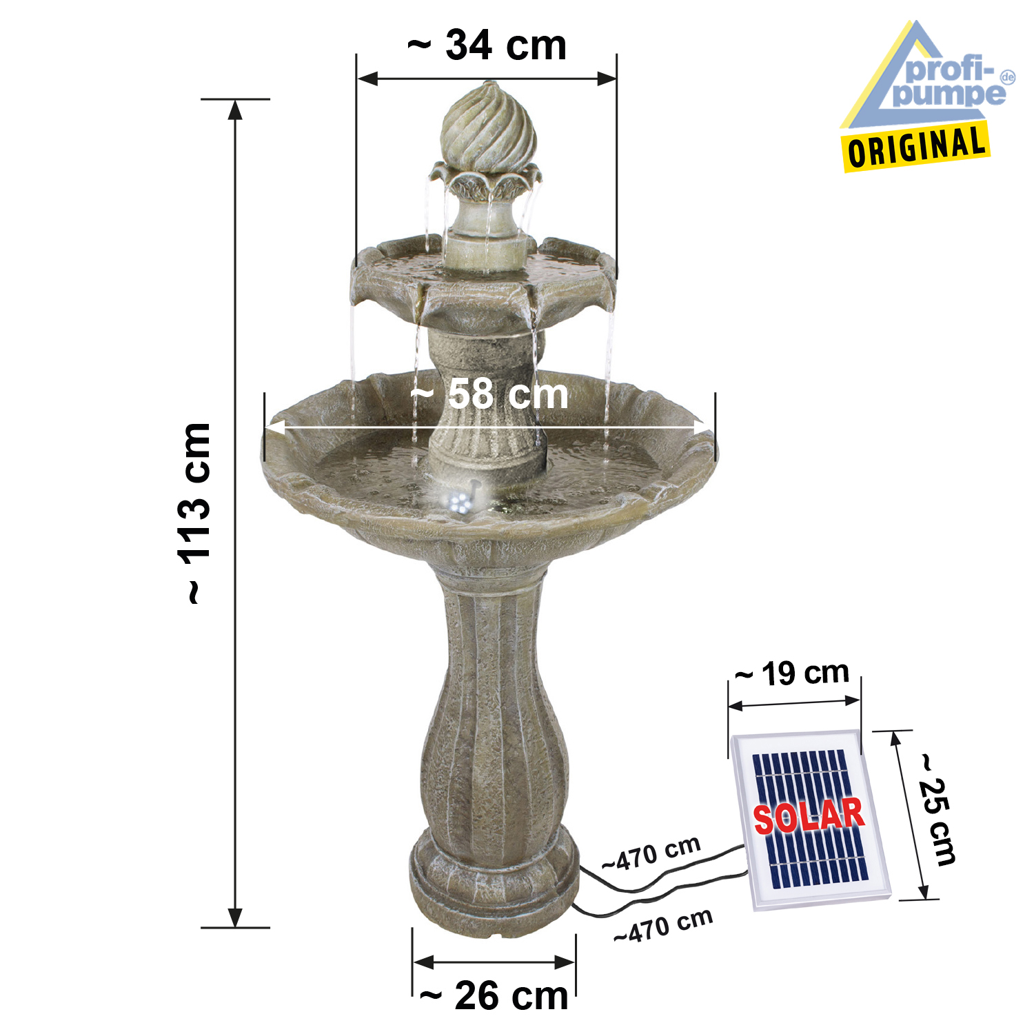 - 112cm hoher Klassik-Garten-Solarbrunnen