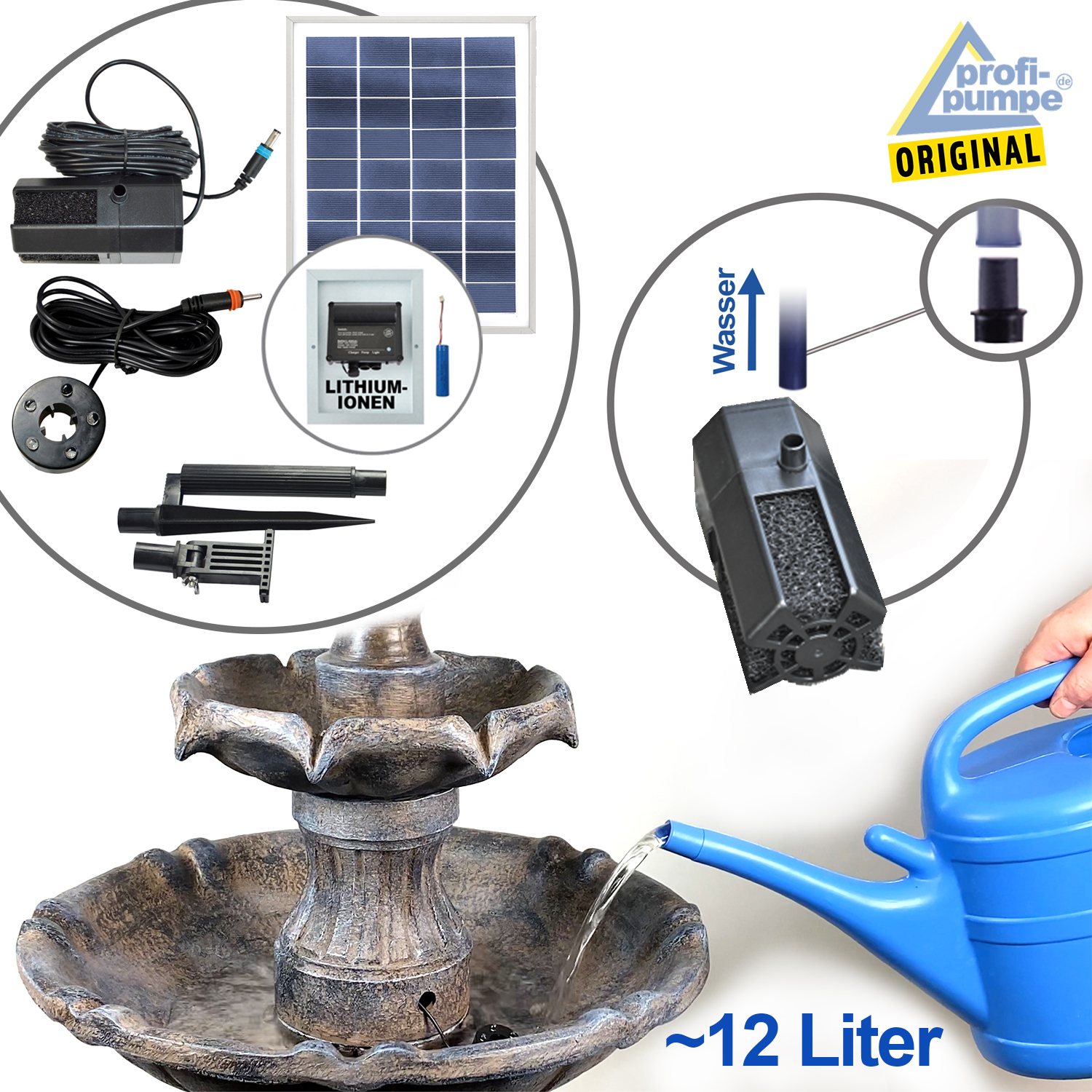 - Solarbetriebener Garten-Brunnen mit 5W Solarpanel und LiIon-Akku